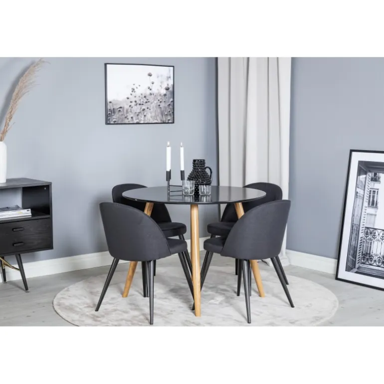 Køb Spisebordssæt Plaza med stole i fløjl i dag og tilføj et strejf af elegance til dit hjem!