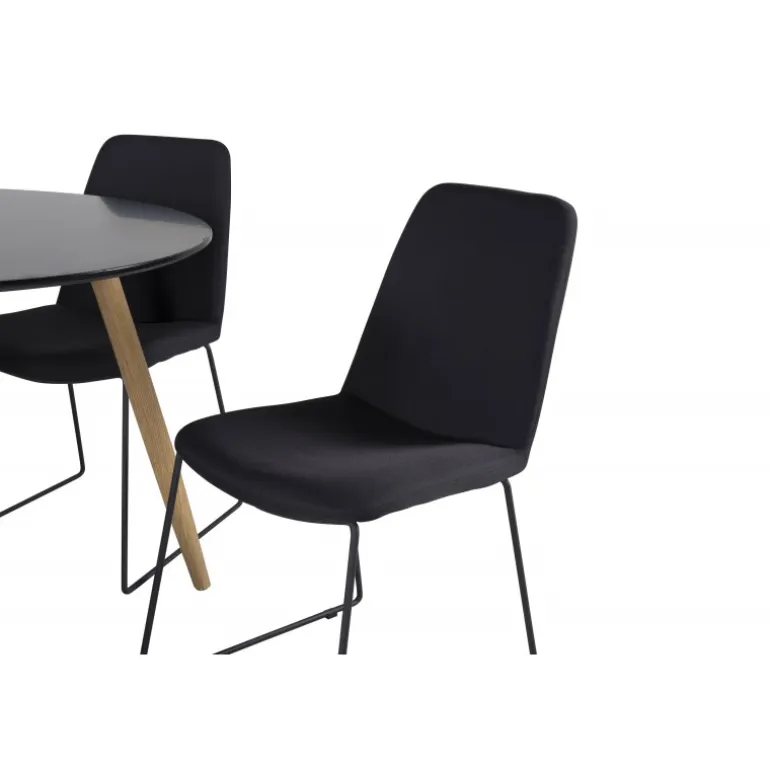 En lille og elegant Spisebordssæt, der passer perfekt til mindre rum! Plaza spisebordet er her kombineret med de moderne Muce stole. En Spisebordssæt, der passer til de fleste hjem! Sort MDF bordplade og moderne design gør sættet både stilfuldt og funktionelt. Nem at vedligeholde med de rette plejetips.