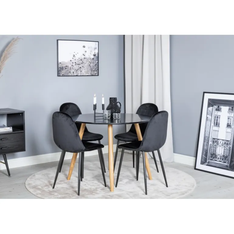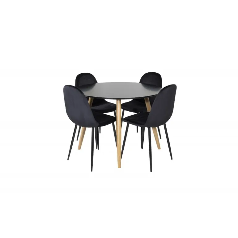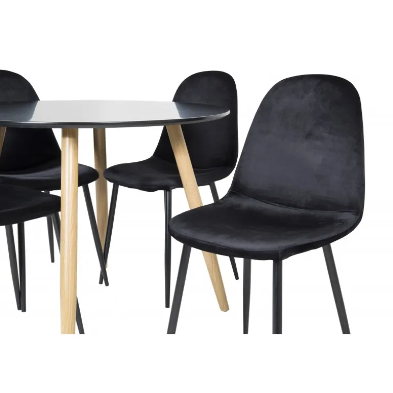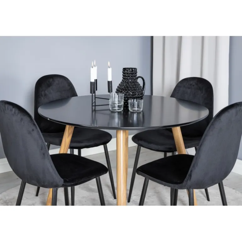 Et moderne Spisebordssæt med en elegant følelse! Her kombineres vores stilfulde spisebord Plaza med komfortable spisestole fra Polar-serien. Indret stuen og nyd dejlige middagsstunder med hele familien.