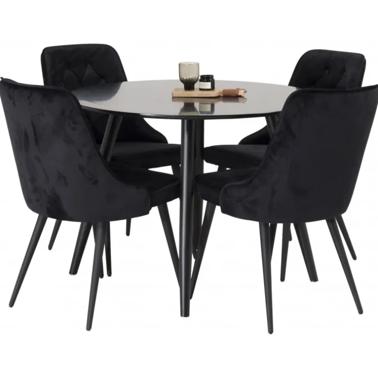 Køb Spisebordssæt Plaza med Velvet Deluxe stole i dag og forvandl dit spiseområde til et stilfuldt og komfortabelt sted!