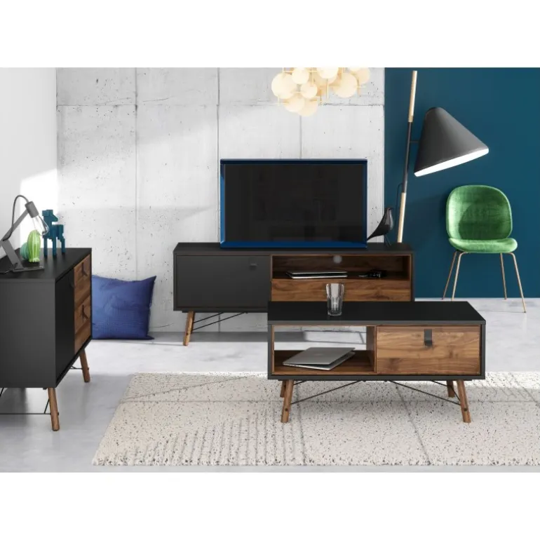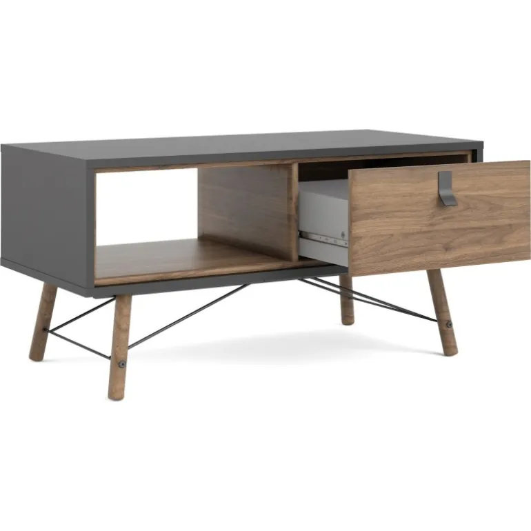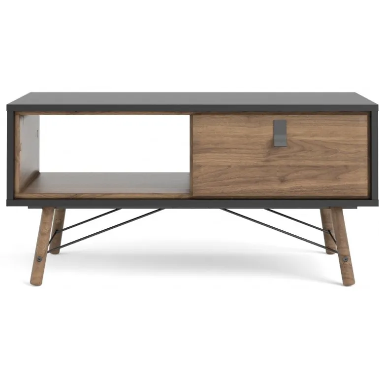 Ry Sofabord med 1 skuffe – Valnødlook/Mat Sort