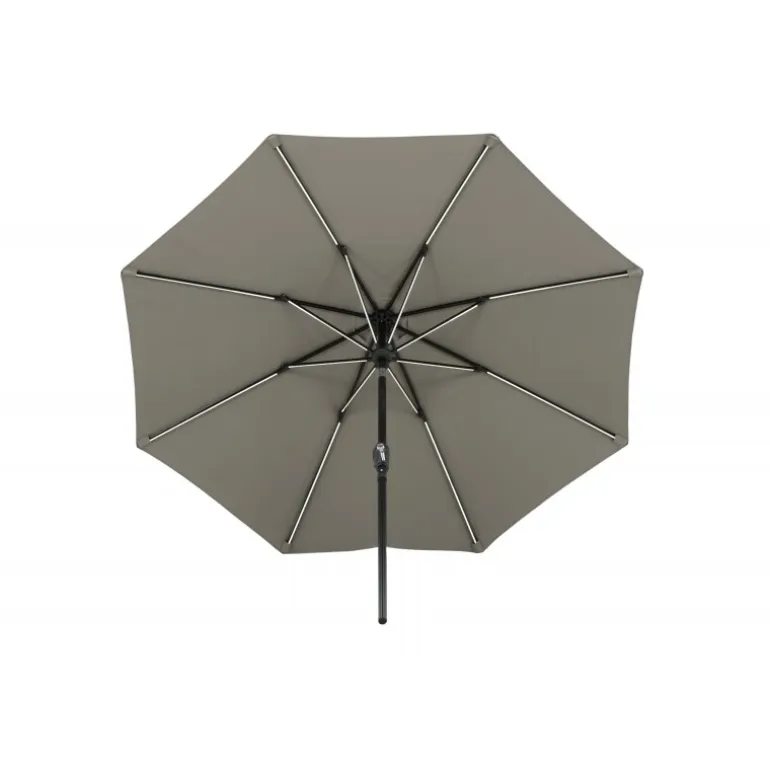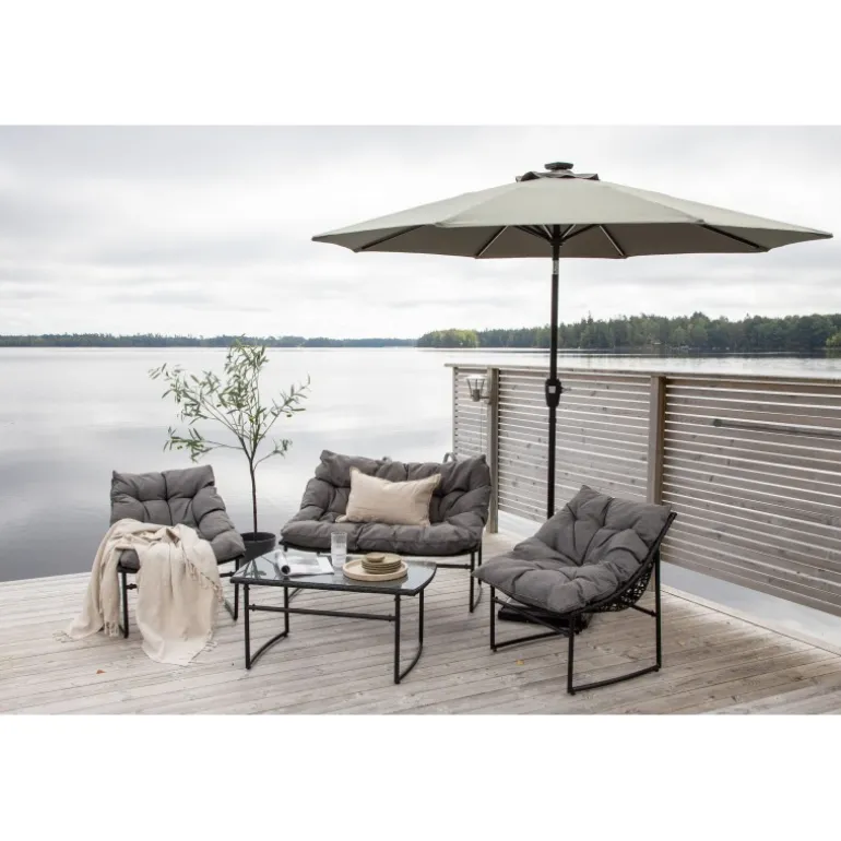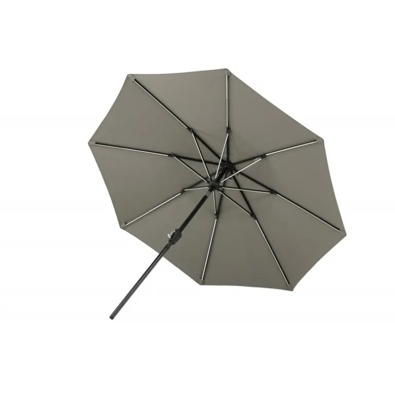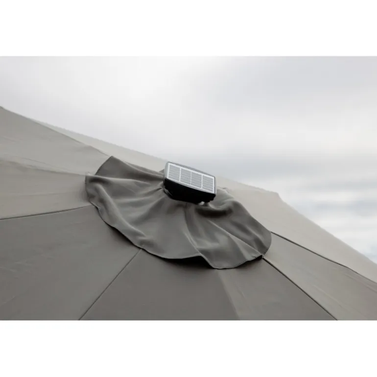 Oplev ultimativ komfort med Sabal Parasol! Denne fritstående parasol med gråt stof er perfekt til dovne dage i skyggen. Flyt den rundt på din terrasse efter behov. LED-belysningen giver et hyggeligt lys om aftenen. Med dimensioner på 270 cm, er denne parasol designet til at beskytte dig mod solen og skabe en behagelig atmosfære. Vedligeholdelsesråd: Brug altid parasolbeskyttelse, når parasollen ikke benyttes for at reducere risikoen for solblegning og skimmel.