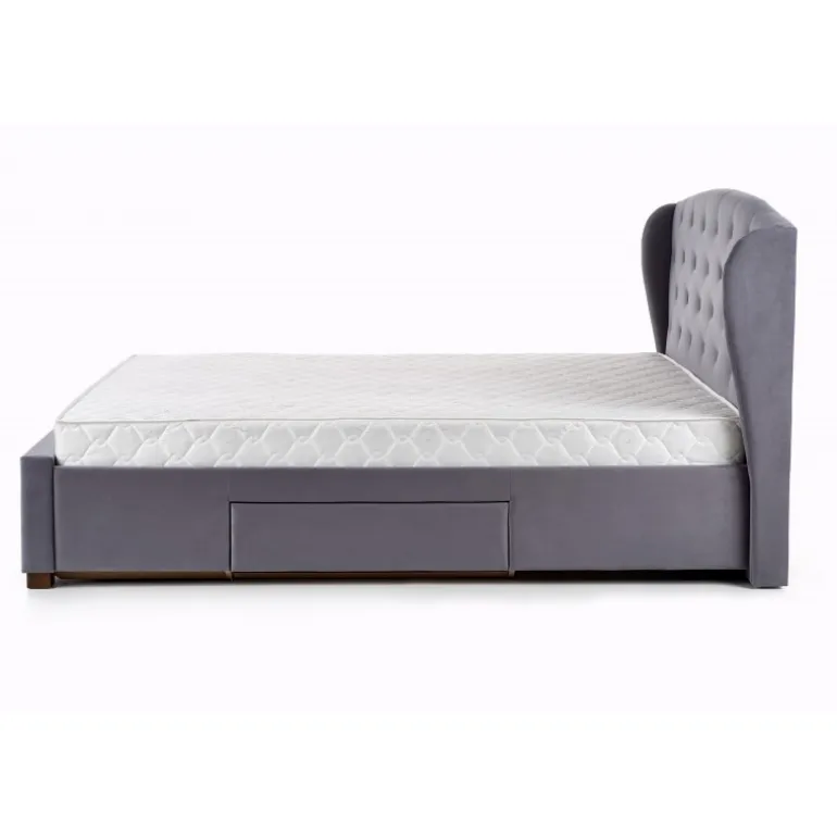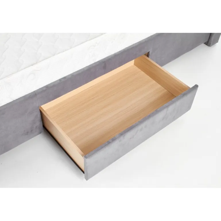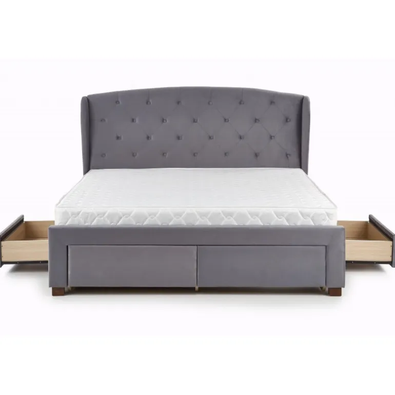 Oplev ultimativ komfort og funktionalitet med SABRINA sengen. Denne seng med skuffer er designet til at kombinere stil og opbevaring, hvilket gør den ideel til ethvert soveværelse. Fremstillet af højkvalitets stof og massivt træ, tilbyder den en robust og elegant løsning. Med sine dimensioner på 171/218/111 cm passer den perfekt til både små og store rum. Den grå stofbelægning og valnødde trædetaljer giver et moderne og tidløst udseende, der vil forbedre enhver indretning.