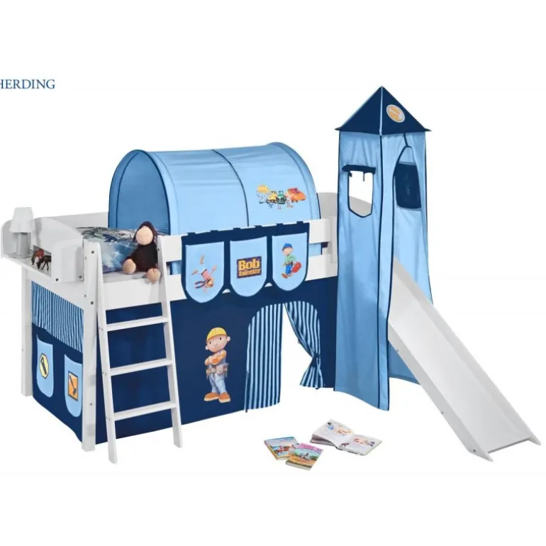 Komplet halvhøj seng der fuldender børneværelset med et hvert barns drøm – egen rutschebane! Men denne halvhøje seng fra serien Bumle kan dit barn trygt slå sig løs. Sengen kommer inkl. lamelbund, madras samt Byggemand Bob-tema forhæng. Sengen er udstyret med flytbar stige med god brede trin, som kan monteres i enten højre eller venstre side. Bumle er serien til dig som går op i kvalitet og tidløst design men ikke vil betale for dyre mærkevarer.