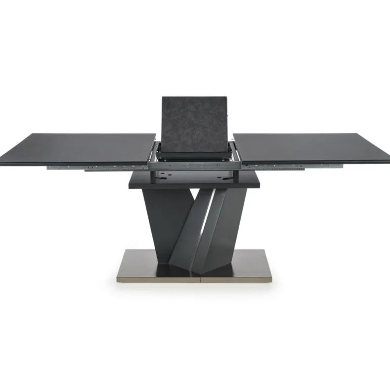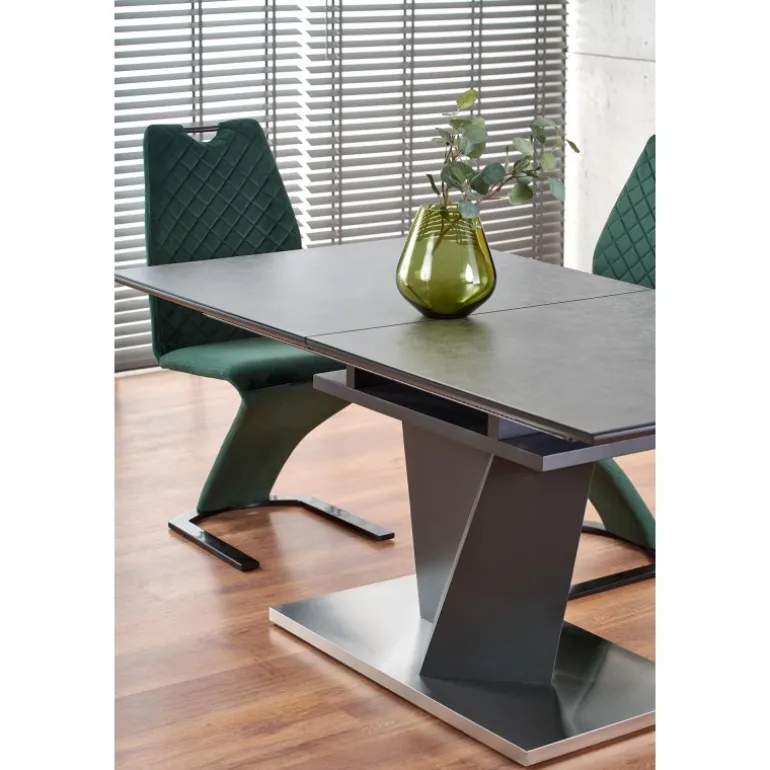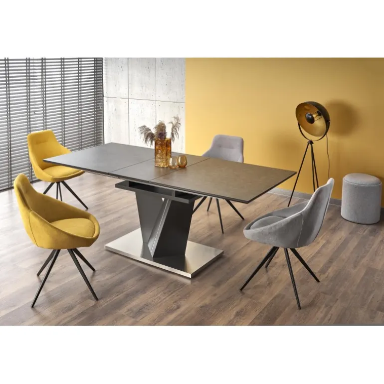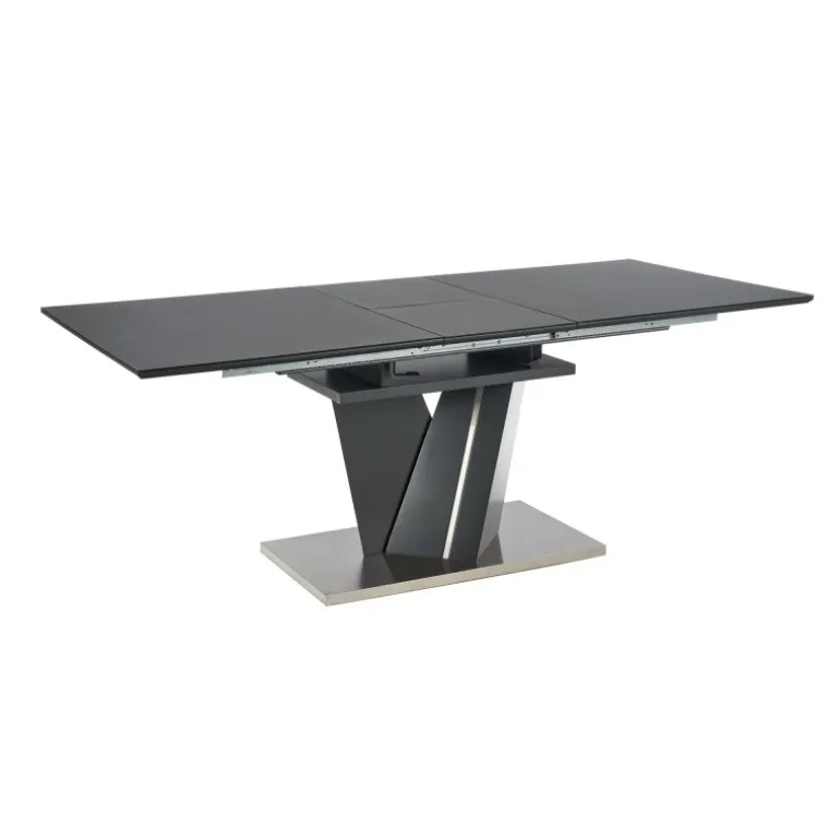 Oplev den perfekte blanding af stil og funktionalitet med SALVADOR Spisebord med udtræket. Dette elegante bord har en mørkegrå glasplade og lakerede MDF-ben, der tilføjer et moderne touch til din spisestue. Med dimensionerne 160-200/90/77cm tilbyder bordet rigelig plads til både hverdagsmåltider og festlige sammenkomster. Den rustfri stål konstruktion sikrer holdbarhed og stabilitet, mens udtræksfunktionen gør det nemt at tilpasse bordet til dine behov.