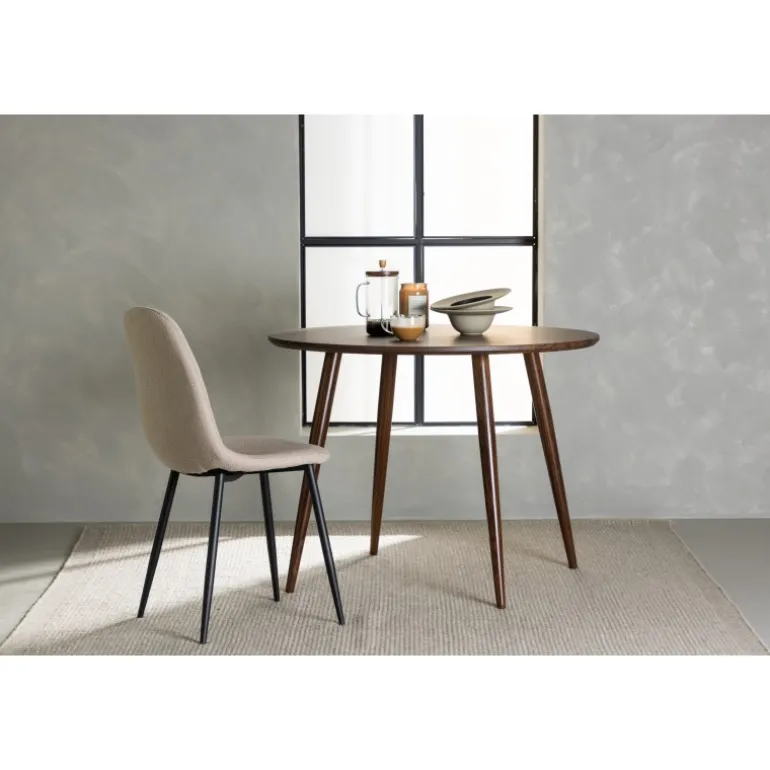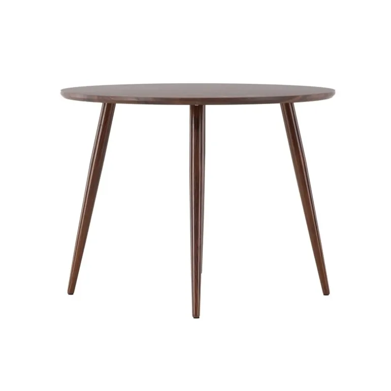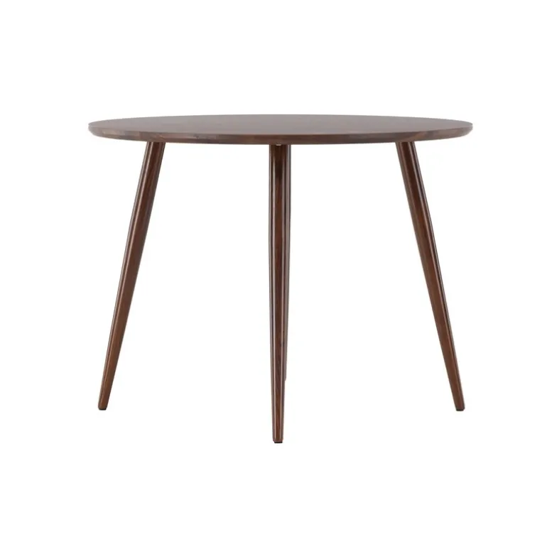 - Materialer af Høj Kvalitet: Rundt spisebordplade i mørkebrunt MDF og ben i brunt metal.