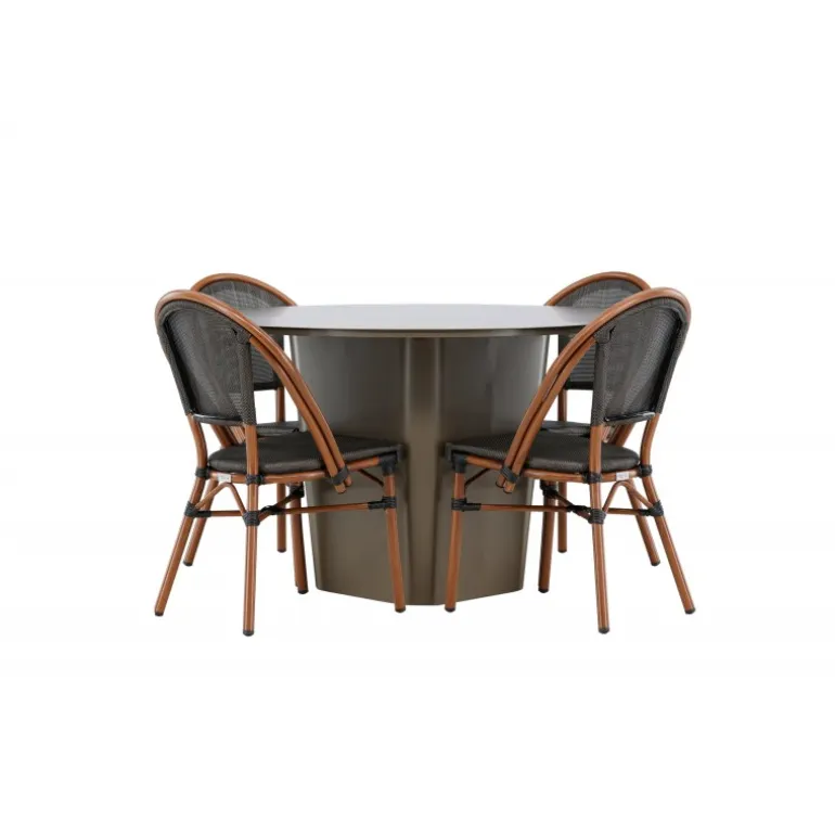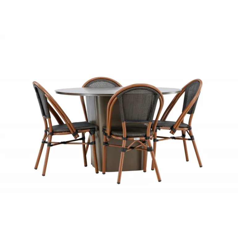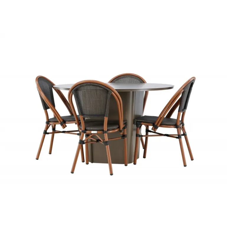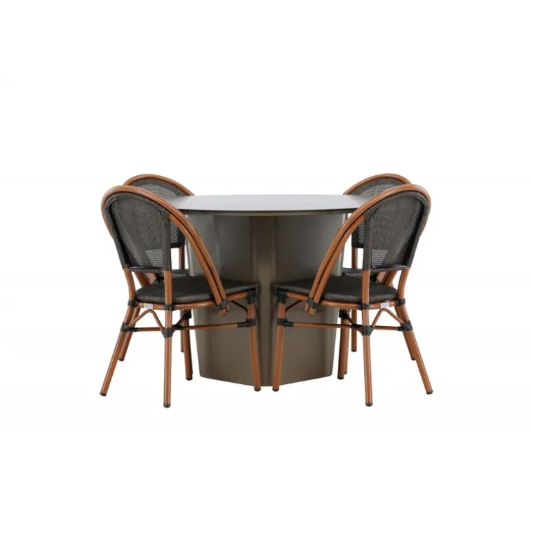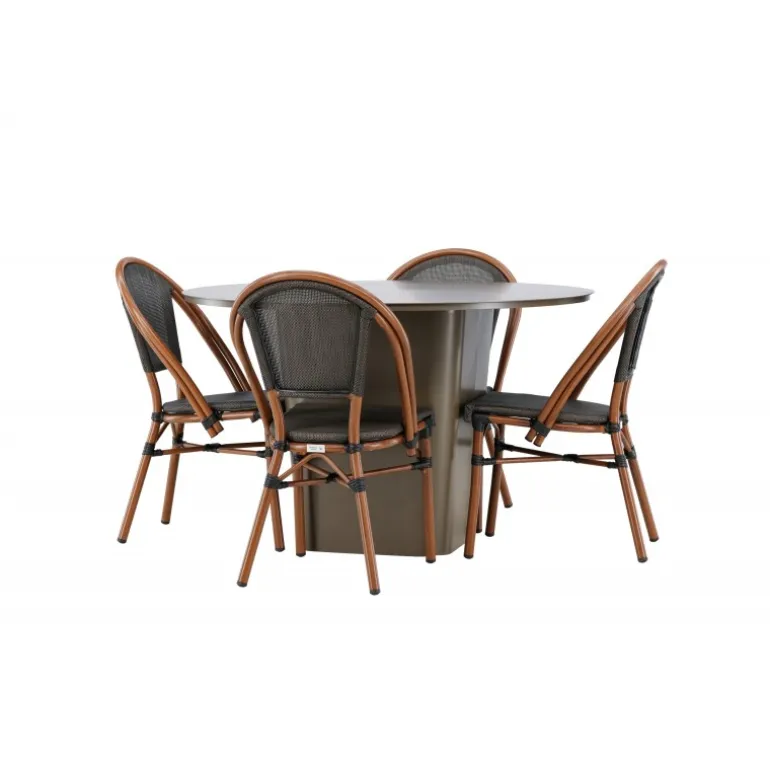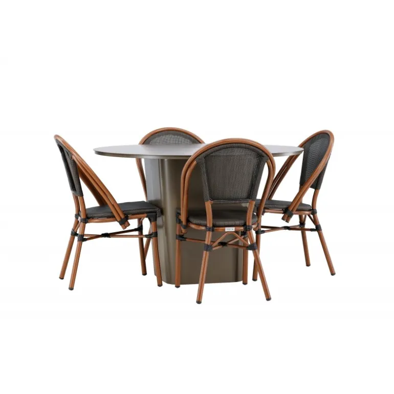 - Sæt: Inkluderer et rundt bord og fire stole.
