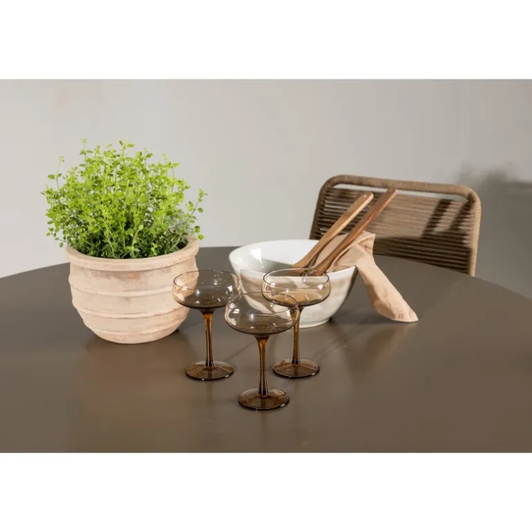 - Robust Bord: Santa Fe-bord i brunt aluminium med en diameter på 120 cm.
