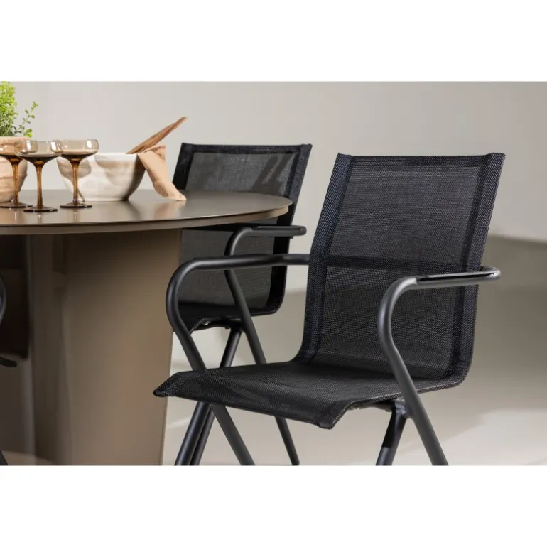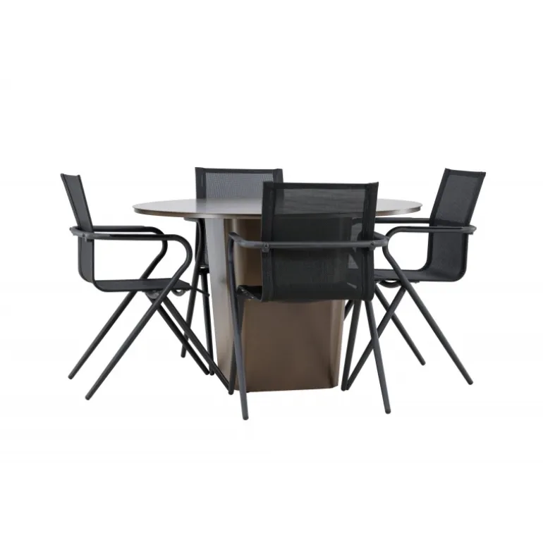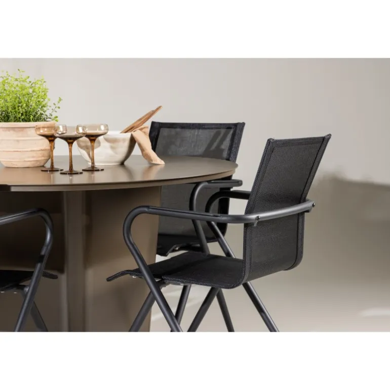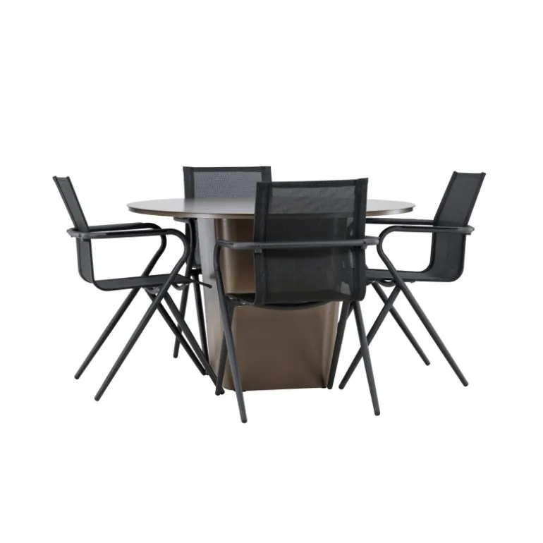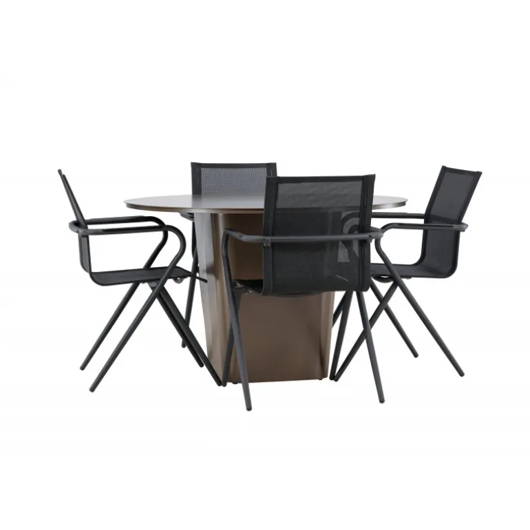- Elegant design: Santa-bordet i brun aluminium og Alina-stolene i sort aluminium tilføjer klasse til dit udendørsområde.