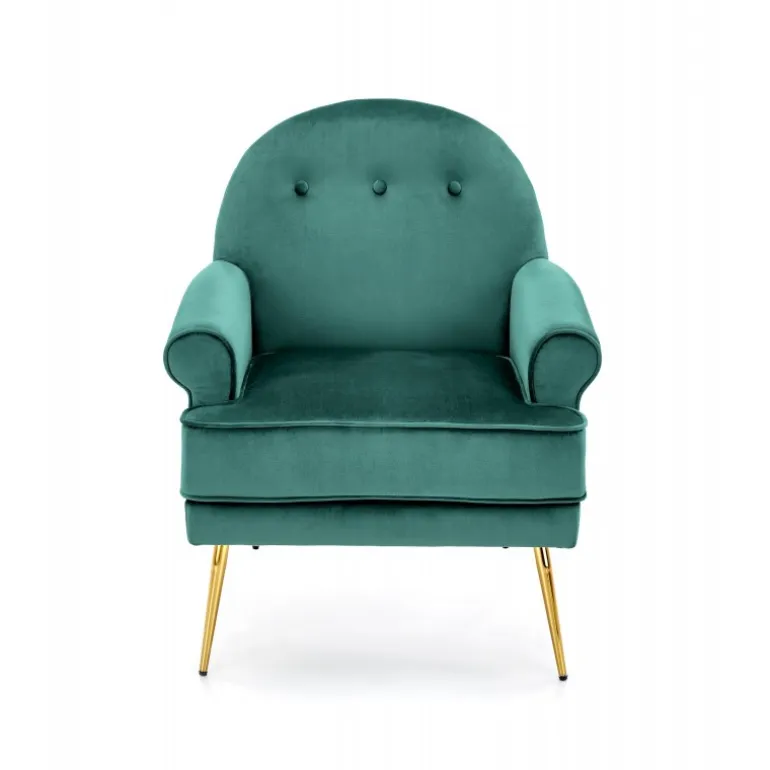 Opdag den elegante SANTI lænestol i mørkegrøn og guld, som kombinerer komfort og luksus i ét møbel. Med det bløde fløjlstof og de stilfulde kromstålben tilføjer denne stol en sofistikeret touch til enhver stue eller læsehjørne. Perfekt til afslapning efter en lang dag, tilbyder SANTI lænestolen både stil og funktionalitet. Dimensionerne på 74/74/88/45 cm gør den ideel til mindre rum, mens den mørkegrønne polstring og guldfarvede ben giver et moderne udtryk. Forbedr dit hjem med denne unikke og komfortable lænestol.