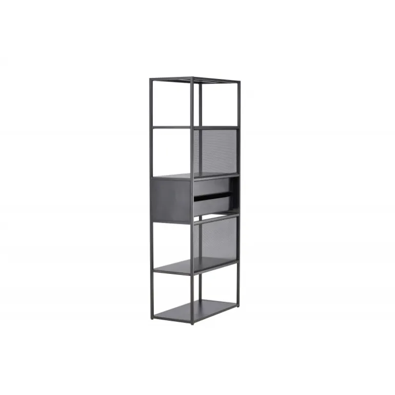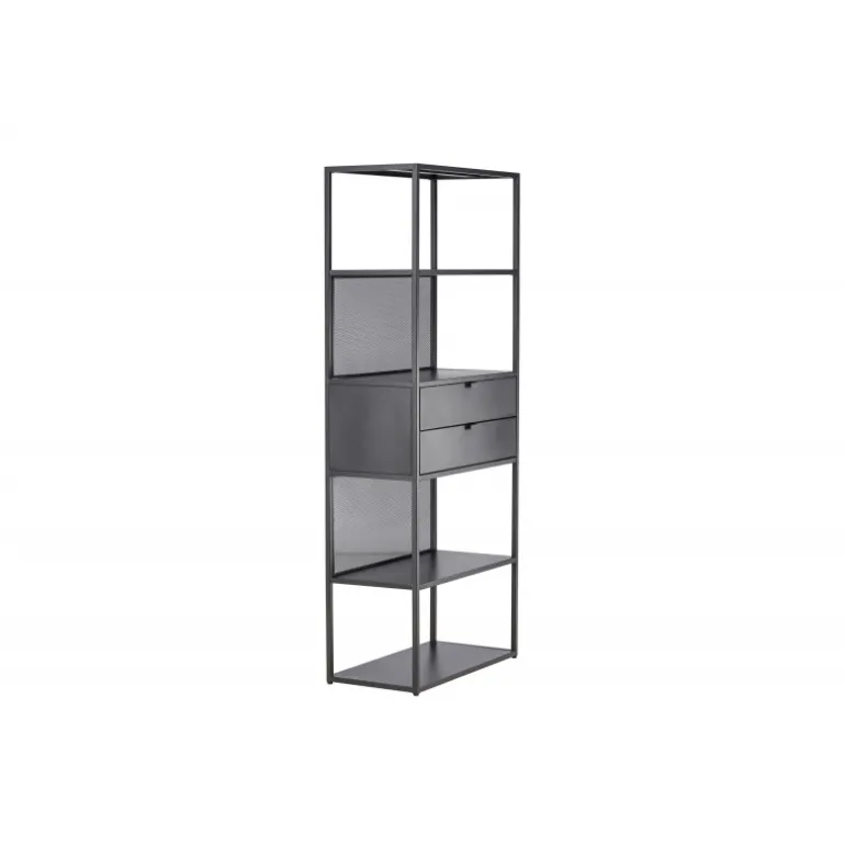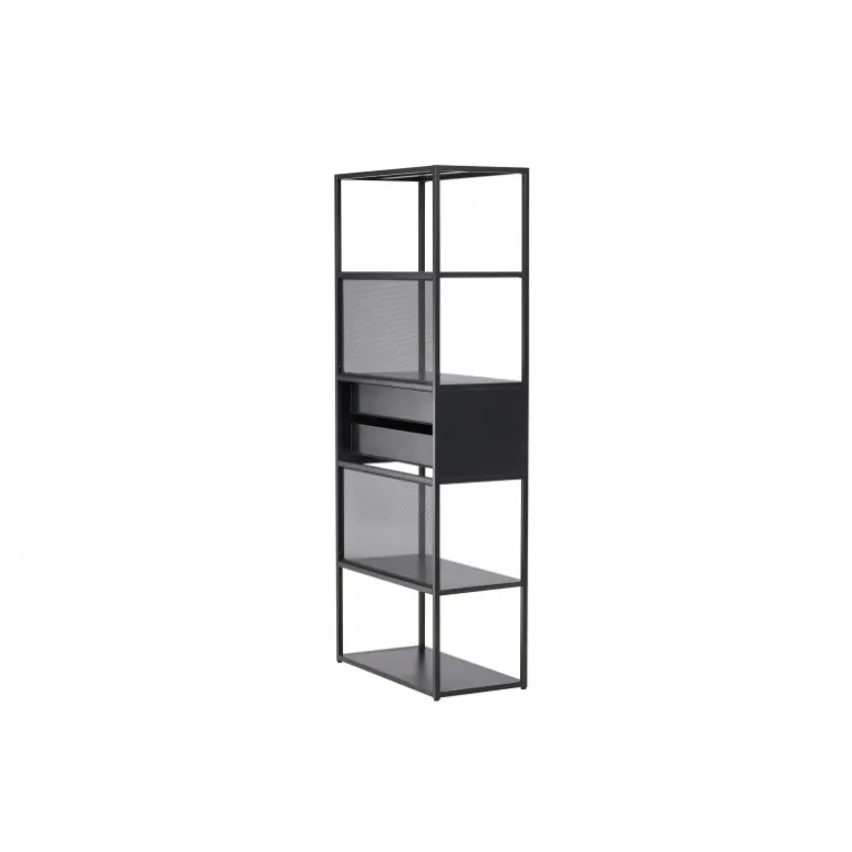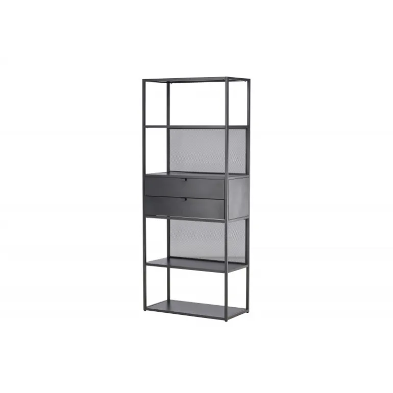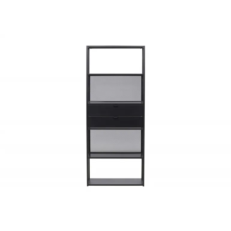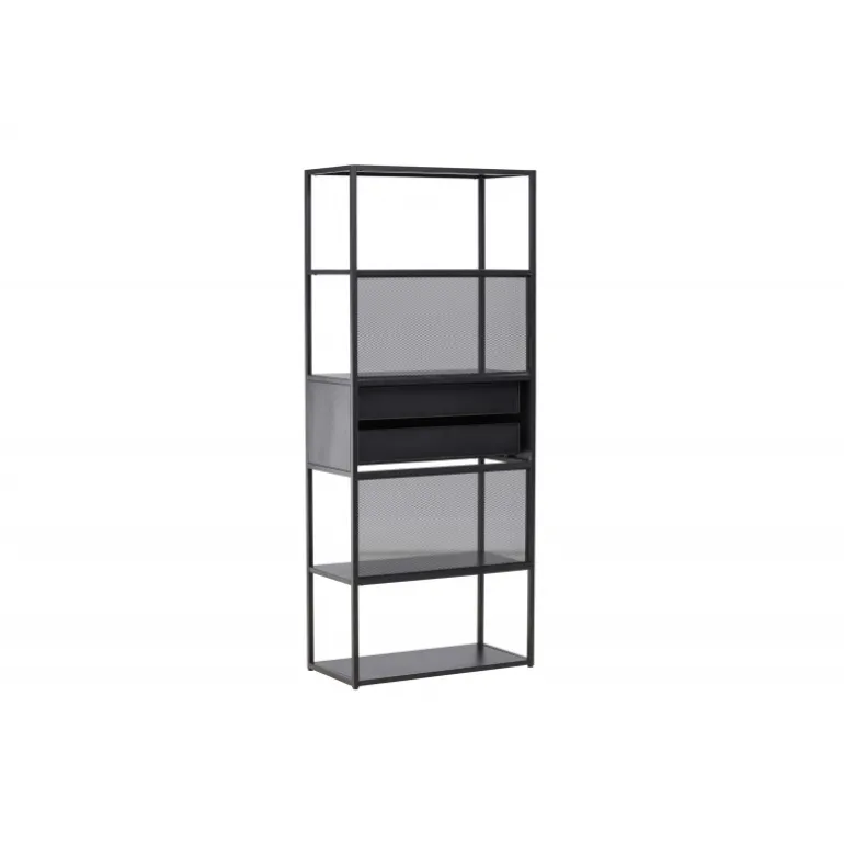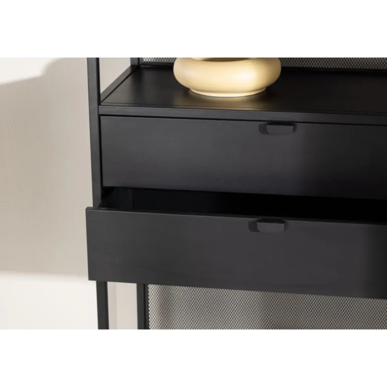 Indret dit hjem klogt med en praktisk opbevaringshylde i sort stål fra Santiago-serien! Med fire åbne hylder kan du nemt dekorere og organisere din hylde på en personlig og stilfuld måde. Pynt den med smukke lysestager, vaser, planter og bøger for et hyggeligt hjemligt look. Men det er ikke alt – to praktiske skuffer i midten giver dig mulighed for at gemme mindre hyppigt brugte genstande og opretholde orden og ryddelighed i huset. Fremstillet af robust sort stål, er Santiago klar til at bære dine yndlingsting med lethed. Dens robuste konstruktion sikrer langvarig holdbarhed og sikkerhed for dine ejendele. Men selvfølgelig er det mere end bare en hylde; det er et personligt præg til din indretning. Dens slanke og minimalistiske design passer ind i hvert rum, fra stuen til soveværelset, og skaber en harmonisk atmosfære. Lad Santiago hjælpe dig med at organisere din plads. Gør livet lettere ved at holde alle dine ting pænt arrangeret, samtidig med at du tilføjer et sofistikeret og hjemligt præg til dit rum. Her mødes form og funktion på den bedst mulige måde!