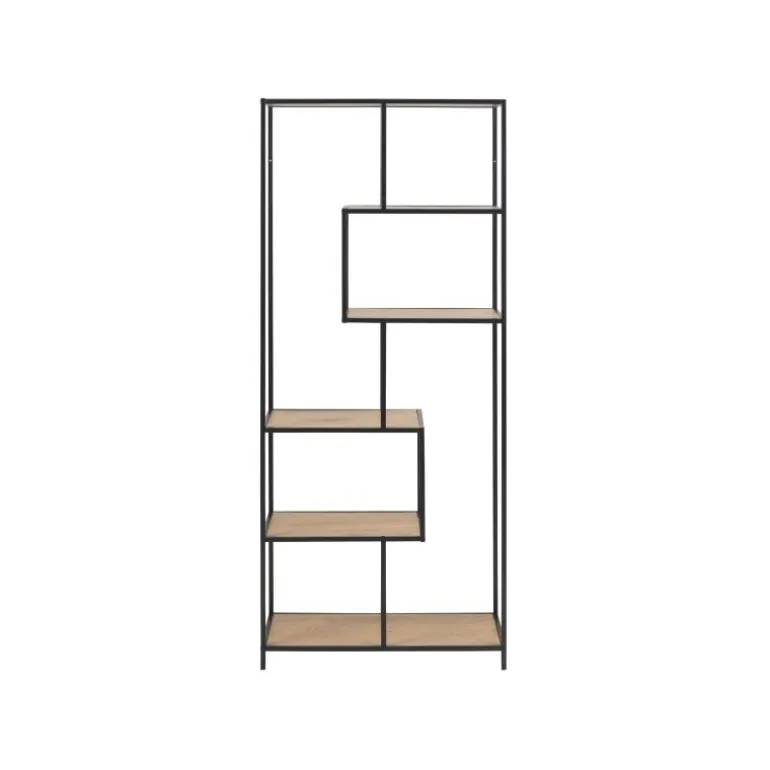 Cristal bogreol er udført med 4 træfarvede hylder i vild eg, der er placeret asymmetrisk i den slanke sort metal ramme. Det nytænkende nordisk design giver mulighed for at placere bogreolen ud i rummet, men reolen kan selvfølgelig også stilles langs en væg.