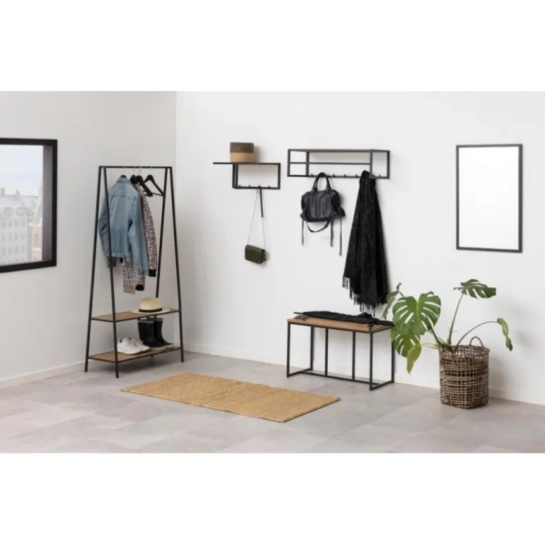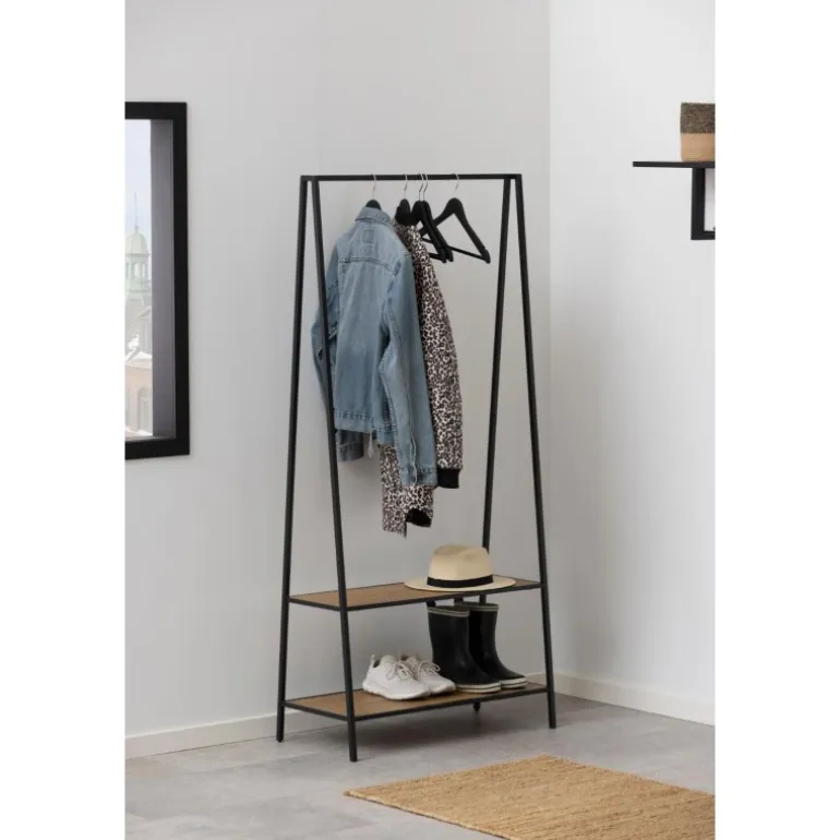 Seaford garderobestativ hylder papir vild eg 2 stk, stel metal pulverlakeret ru mat sort L:77 B:37 H:165 cm