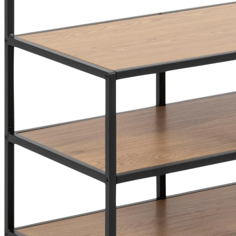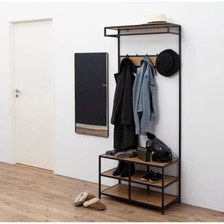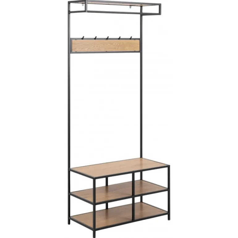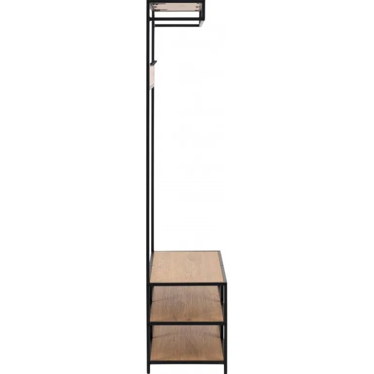 Seaford garderobestativ hylder papir vild eg 3 stk, knage 5 stk, stel metal pulverlakeret ru, mat sort L:77 B:40 H:185 cm
