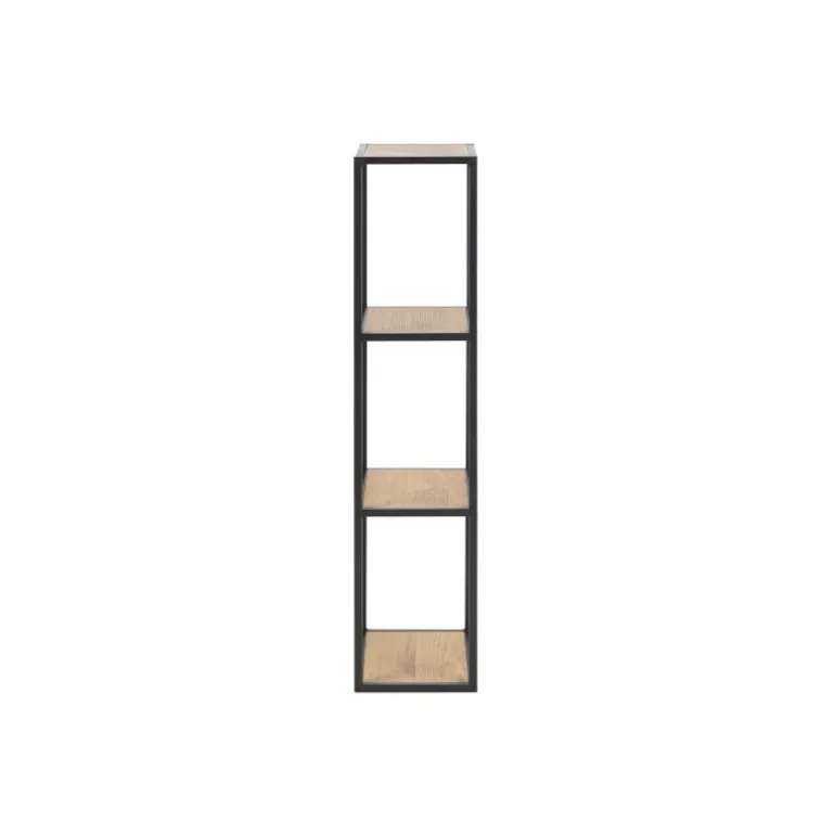 Seaford bogreol væghængt hylder 2 stk, papir vild eg 3, stel metal ru pulverlakeret mat sort, 5 L:24 B:37 H:108 cm