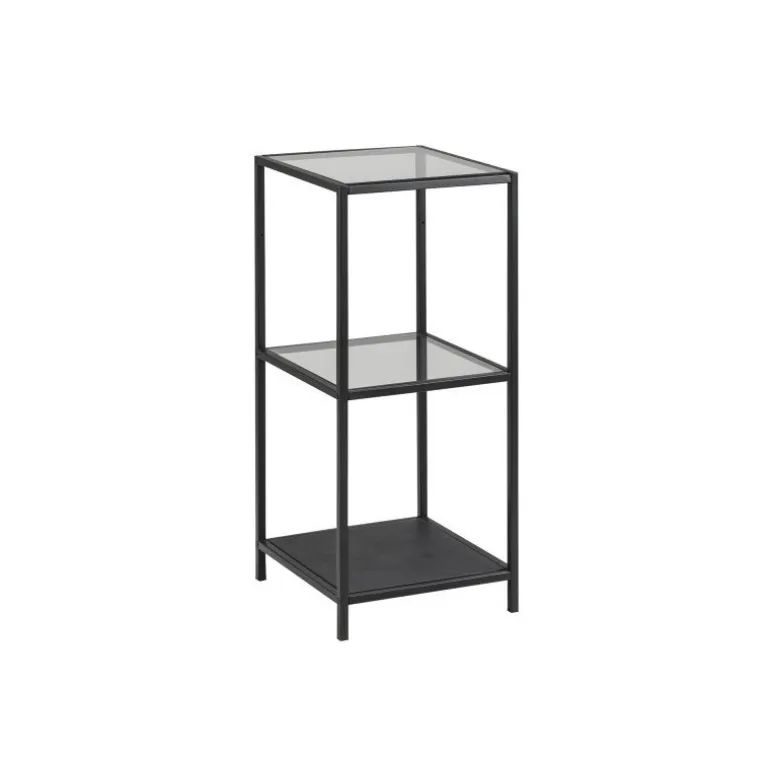 Flot reol med glashylder og slankt sortmalet metalstel i lækker nordisk stil, hvor stilren æstetik og funktionalitet kombineres på bedste vis. En moderne og funktionel reol med mange anvendelsesmuligheder. Udover i stuen kan reolen også med fordel benyttes til opbevaring i badeværelset eller køkkenet.