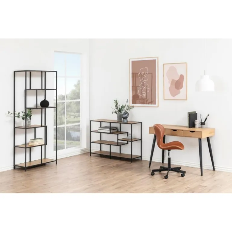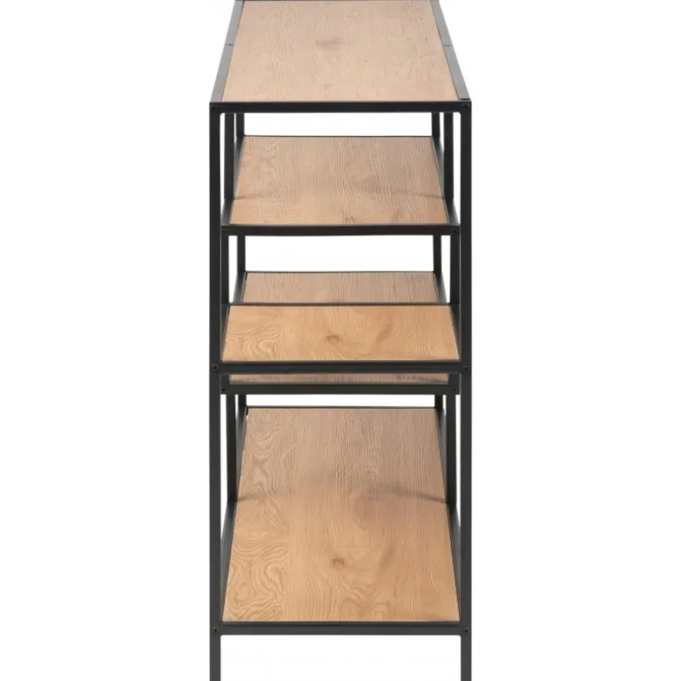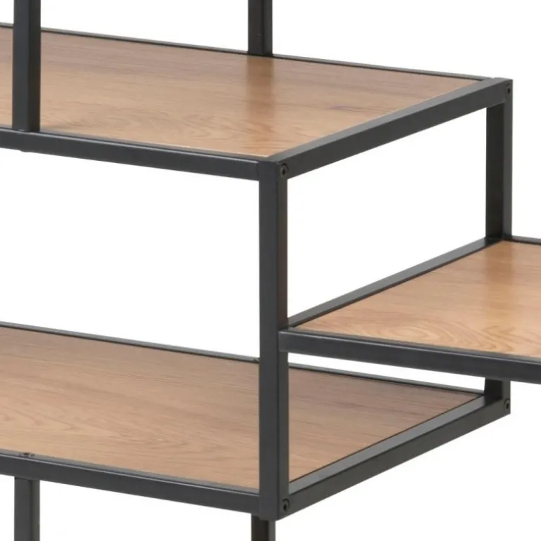 Seaford bogreol hylder 3 stk, papir vild eg stel metal pulverlakeret ru mat sort, asymmetrisk L:114 B:35 H:78 cm