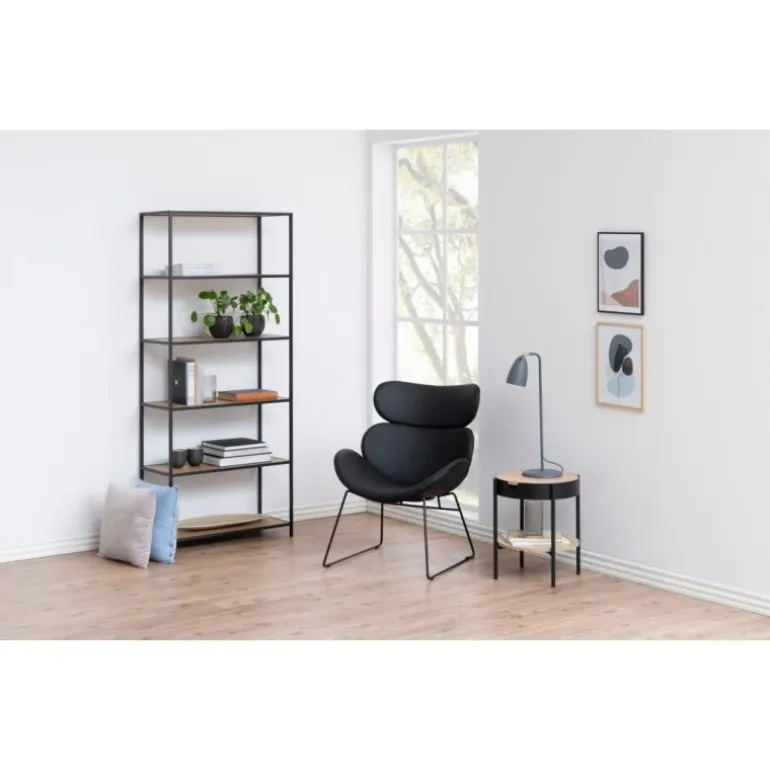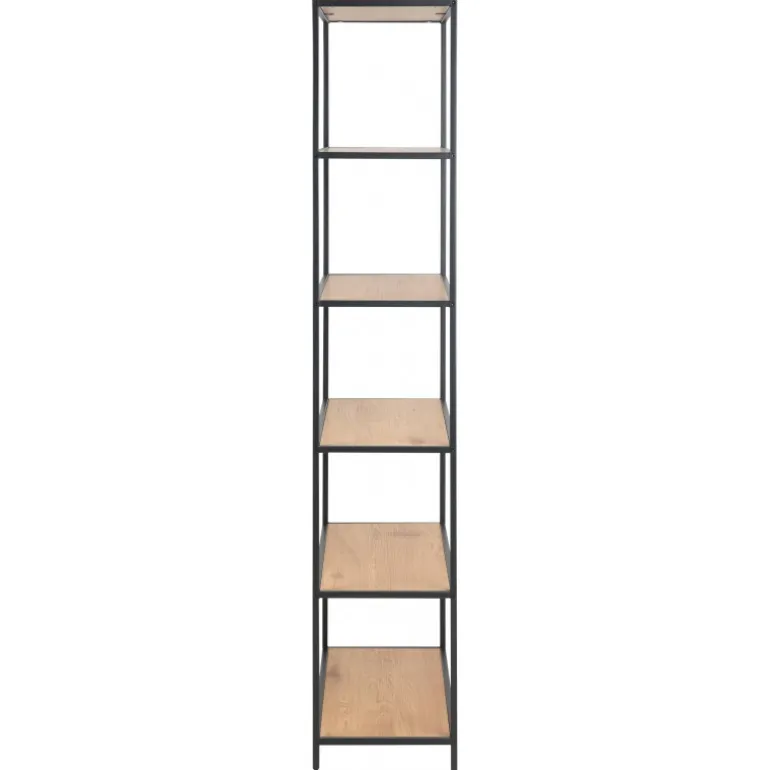 Seaford bogreol hylder 4 stk, papir vild eg stel metal pulverlakeret ru mat sort L:77 B:35 H:185 cm