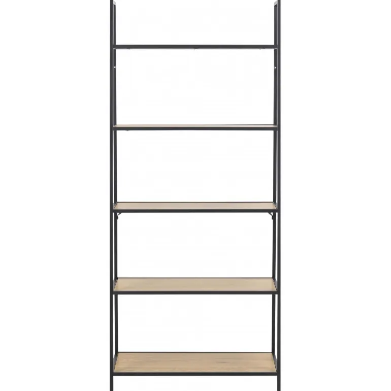 Seaford reol skrå hylder 5 stk, papir vild eg stel metal pulverlakeret ru mat sort L:77 B:36 H:174,5 cm