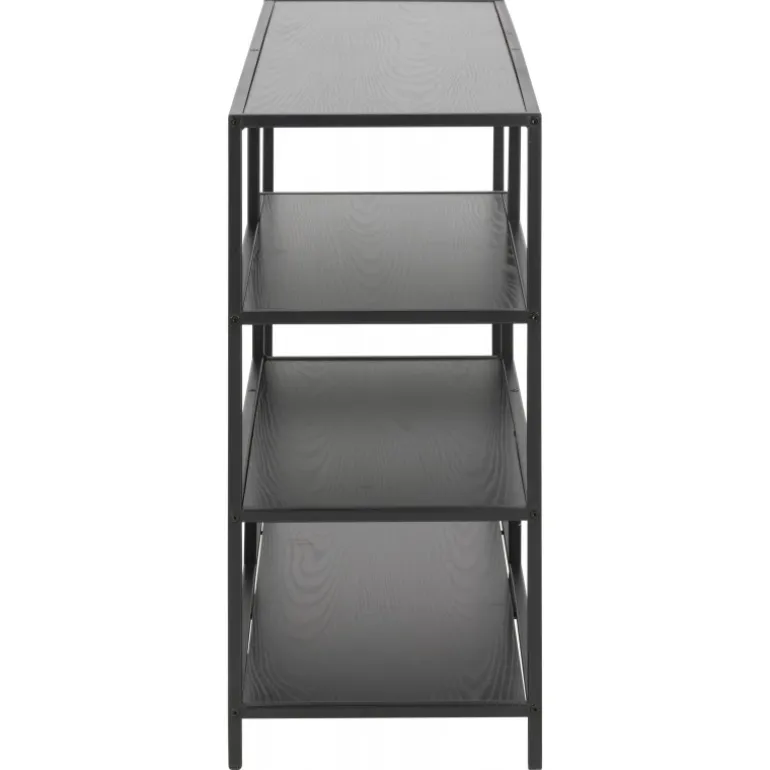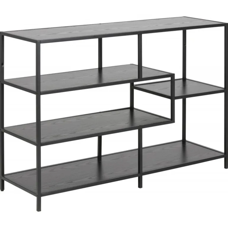 Seaford bogreol hylder 3 stk, melamin ask sort stel metal pulverlakeret ru, mat sort, 5, asymmetrisk L:114 B:35 H:78 cm