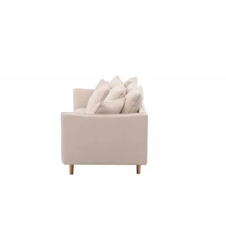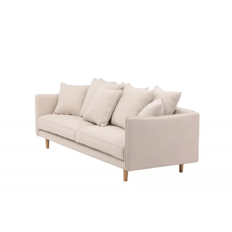 En off-white sofa-drøm, der udstråler luksus, elegance og hygge! Sofa-serien Segelskaren kombinerer elegant design, lige nordisk design med et charmerende udtryk, der skaber et indbydende blikfang. De smalle ben i fyrretræ giver denne 3 personers sofa et smart og dekorativt løft, som gør det nemt at støvsuge under den. De mange puder, der pryder og klæder sofaryggen, er helt i tråd med trenden og giver dig en sofa med optimal komfort. Giv dig selv tid til afslapning – hyg dig med familien eller bred dig alene!