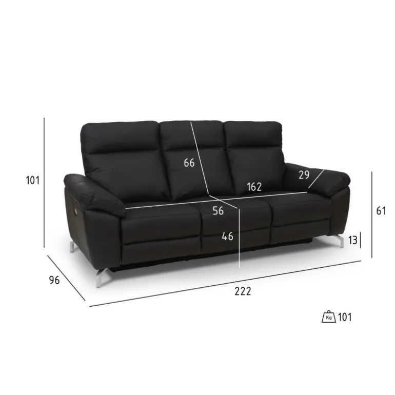 Mål 3 pers. W 222 x D 96 x H 101 CM