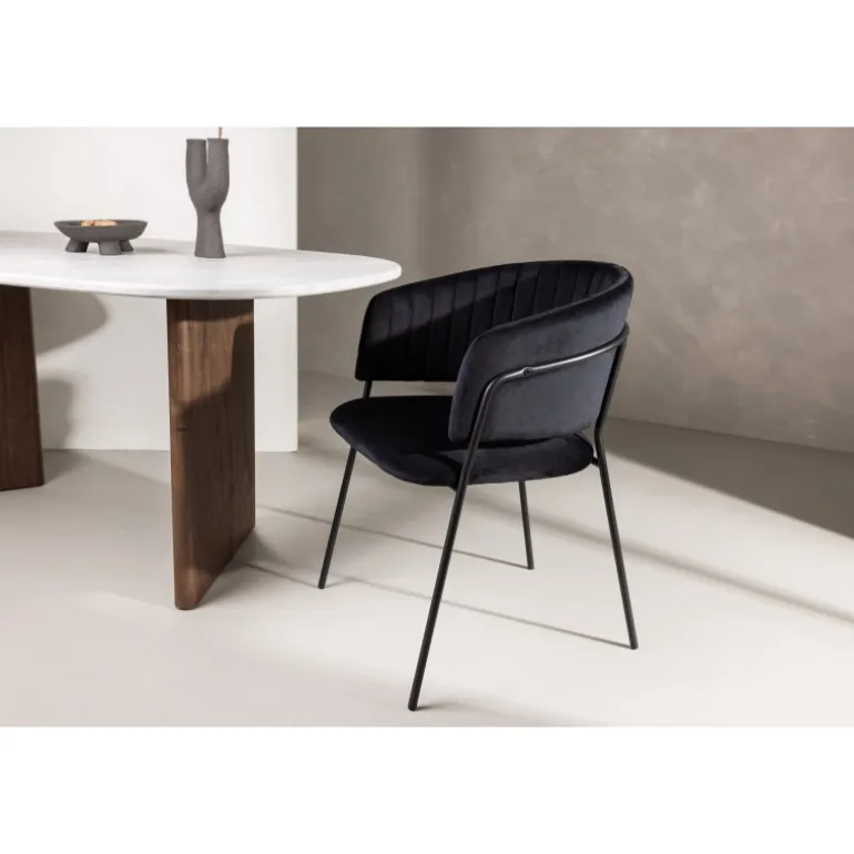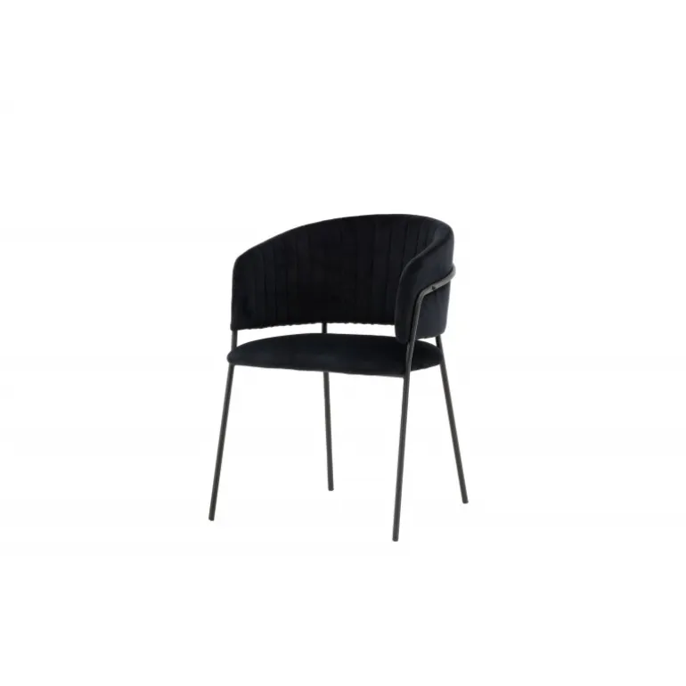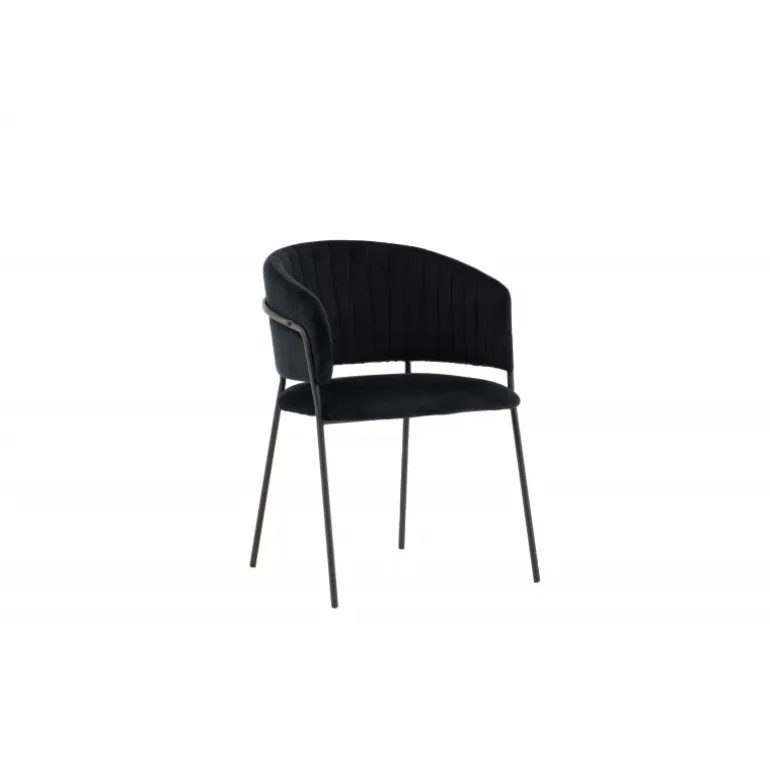 Indret hjemmets hjerte moderne, komfortabelt og tidløst med en iøjnefaldende stol fra serien Selma i en dristig sort farve! Denne spisebordsstol har et fuldt betrukket design med en let afrundet ryg og sæde i velourstof med stilfulde dekorative syninger, og stolens ben er smalle i sort stål – garanteret både flot og behagelig. Skab et indbydende og hyggeligt udtryk og nyd dejlige måltider sammen!
