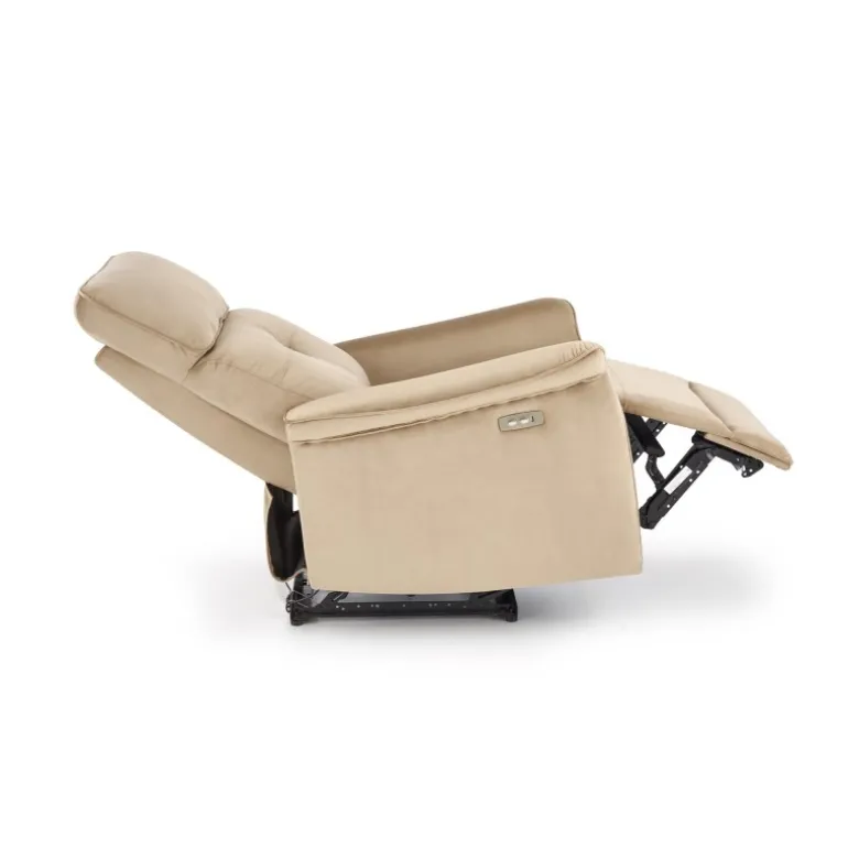 Oplev ultimativ komfort med SEMIR lænestol, beige. Denne lænestol er designet med elektrisk foldemekanisme og USB-stik, hvilket gør den perfekt til afslapning og moderne livsstil. Fremstillet af fløjlsstof i farven beige (BLUVEL 28), tilføjer den et strejf af elegance til enhver stue. Stolen har justerbare dimensioner på 80/90-170/92-108/46 cm, så du kan tilpasse din siddeoplevelse efter behov. Med en nettovægt på 38 kg er denne lænestol både robust og komfortabel.