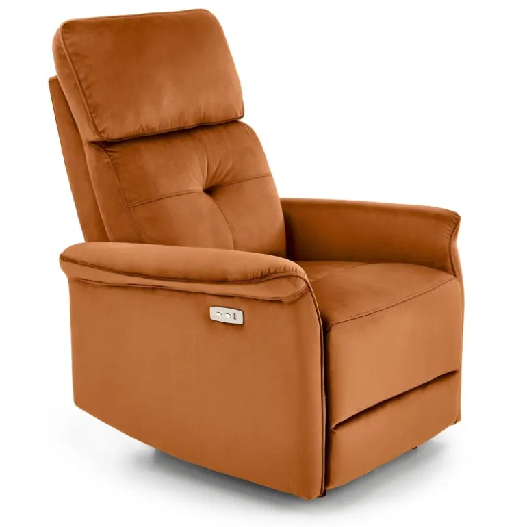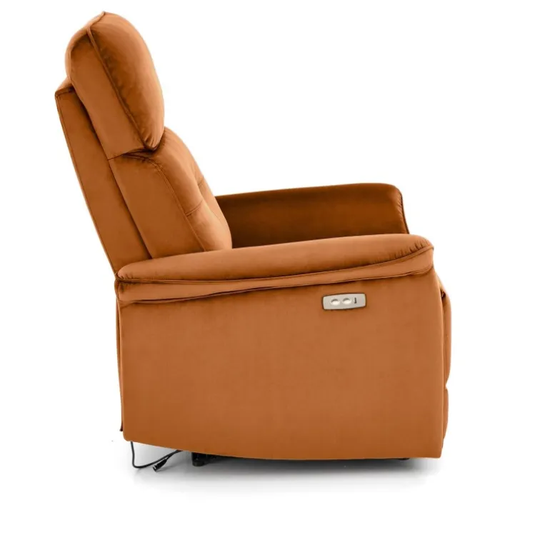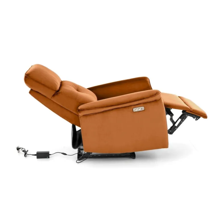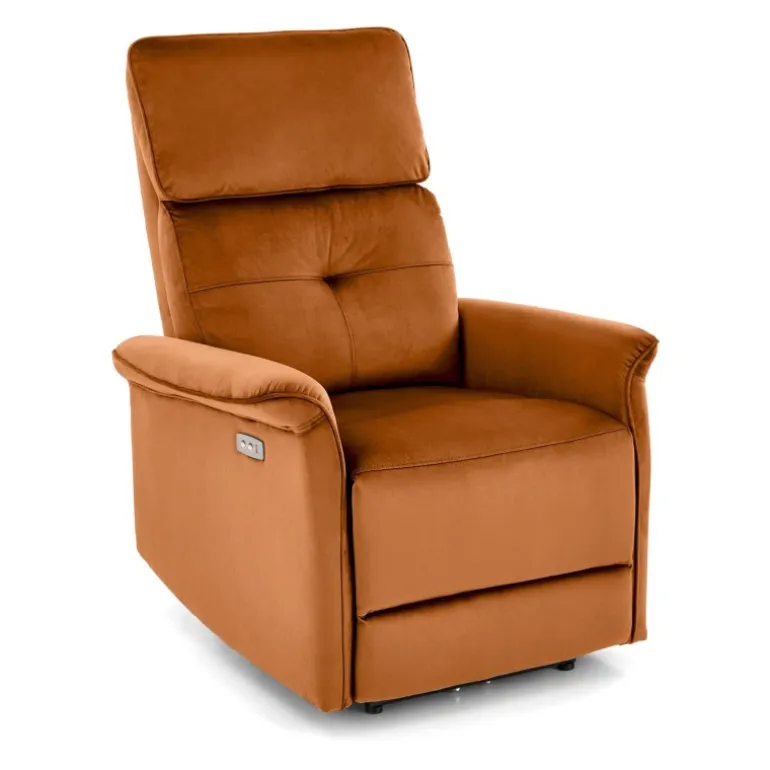 SEMIR Lænestol i kanel er den perfekte tilføjelse til dit hjem for ultimativ komfort og stil. Denne lænestol har en elektrisk foldningsfunktion og en USB-stik, så du kan oplade dine enheder, mens du slapper af. Fremstillet af blødt velourstof i en elegant kanel farve, vil denne stol helt sikkert forbedre din indretning. Med dimensioner på 80/90-170/92-108/46 cm passer den godt ind i enhver stue eller læsehjørne.