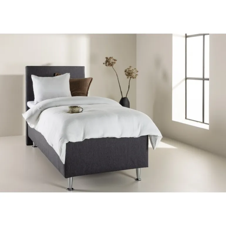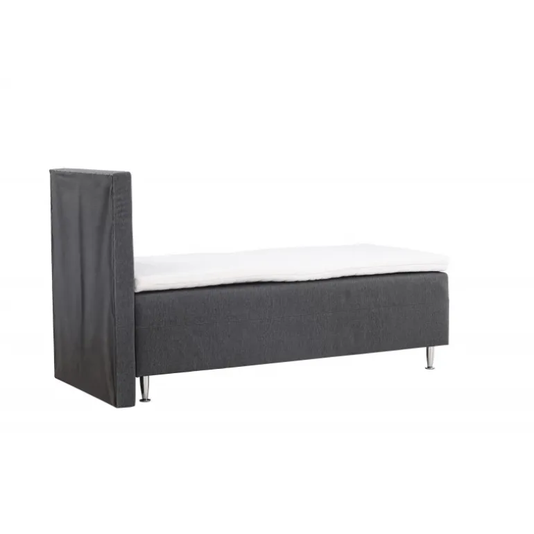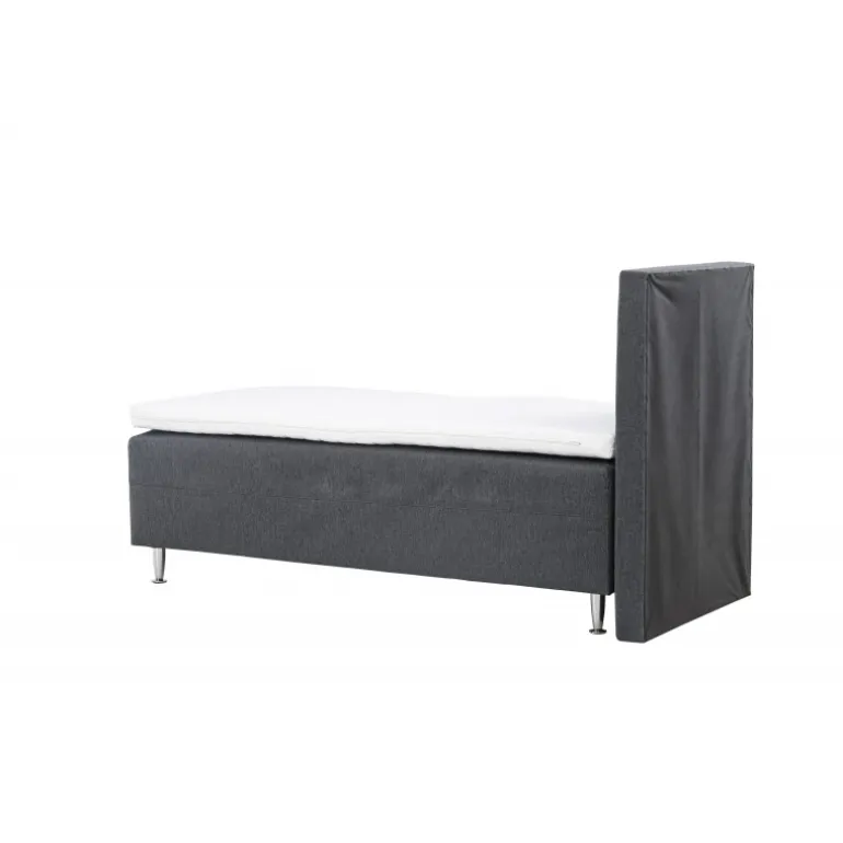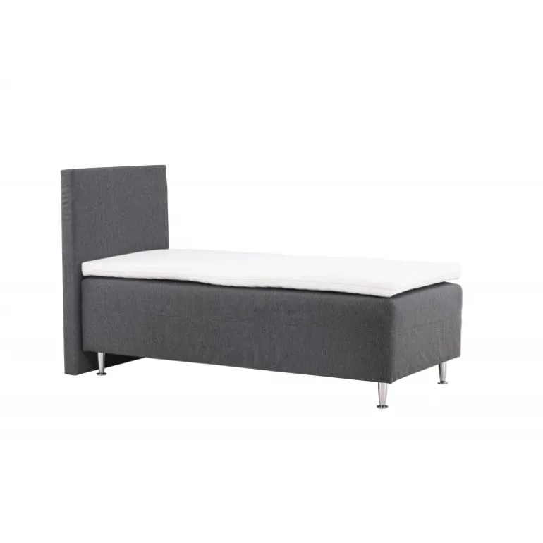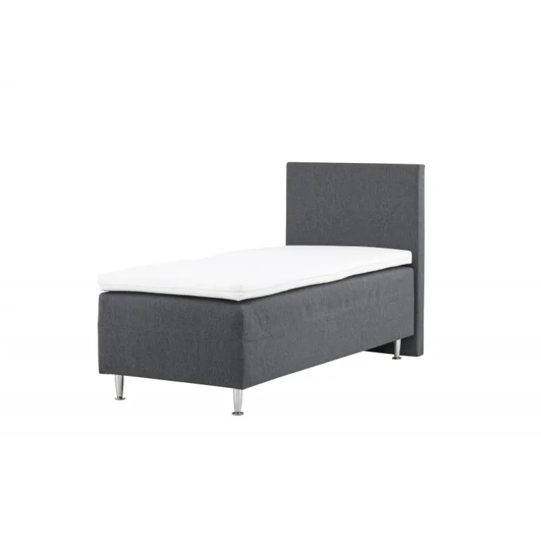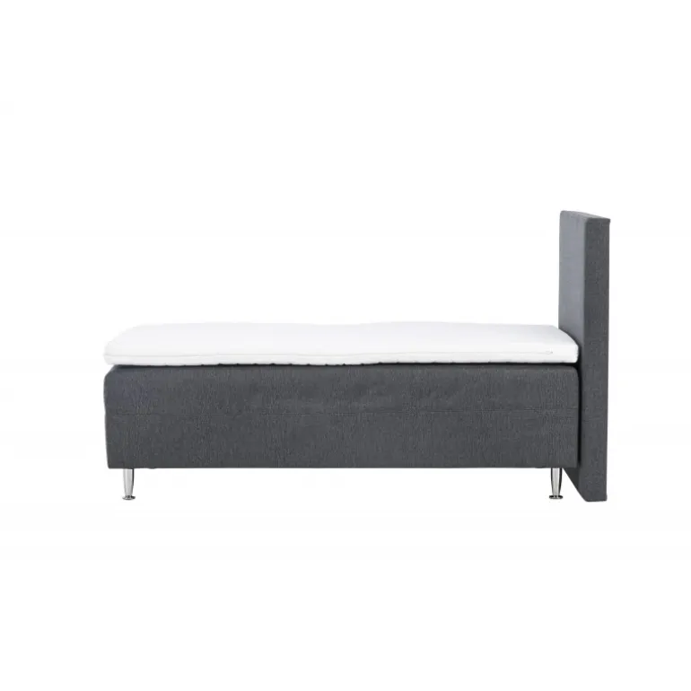 Velkommen til din nye oase af komfort og elegance med vores seng Mesa! Mesa er den ultimative seng, der kombinerer stil, komfort og funktionalitet på en fortryllende måde. Hvis du værdsætter en god nattesøvn og en afslappende atmosfære i dit soveværelse, er Mesa den perfekte seng for dig. Mesa er en 90 cm bred rammeseng betrukket med et elegant mørkegråt stof. Den dybe, mørke farve tilføjer et moderne touch til din indretning og skaber en følelse af luksus og sofistikering. Stoffet er behageligt at røre ved og skaber en varm og indbydende atmosfære i dit soveværelse. Sengen er udstyret med plastikben, der ikke kun giver stabilitet men også skaber en elegant kontrast til det mørke stof. Du kan være sikker på, at Mesa er en seng, der vil stå tidens prøve og give dig mange nætter med rolig søvn. Sengens høje hovedgærde er ikke kun en stilfuld detalje men også praktisk, når du vil læne dig tilbage, læse en bog eller se TV i sengen. Sengen har en fasthed; den er solid og giver dig den rette balance mellem støtte og komfort for en god nats hvile. Pynt din Mesa med bløde puder og luksuriøst sengetøj for at skabe den perfekte hyggelige følelse i dit soveværelse. Kryb i seng hver aften og oplev den afslappende fornemmelse af at være omgivet af skønhed og komfort. Mesa er ikke bare en seng; det er din personlige tilflugt fra hverdagens stress og krav. Forkæl dig selv med den bedste søvn, du fortjener.