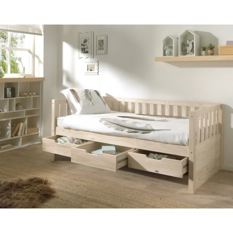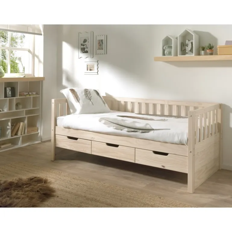 Seng med opbevaring 90 x 200 cm – Fritz, natur fyr