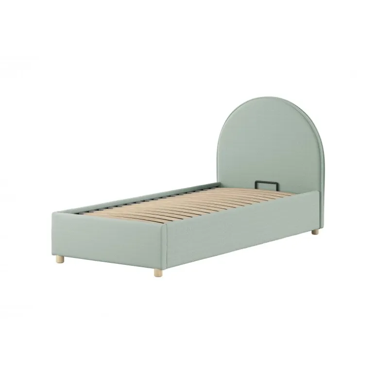 Seng med opbevaring 90 x 200 cm – Moon, grøn bouclé