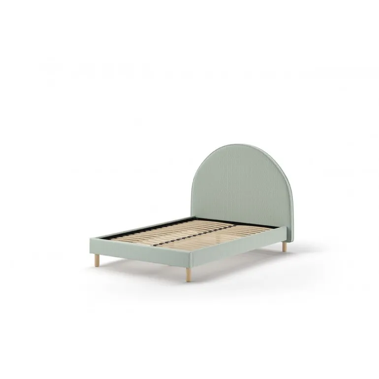 Seng med sengegavl 140 x 200 – Moon i olivengrøn bouclé