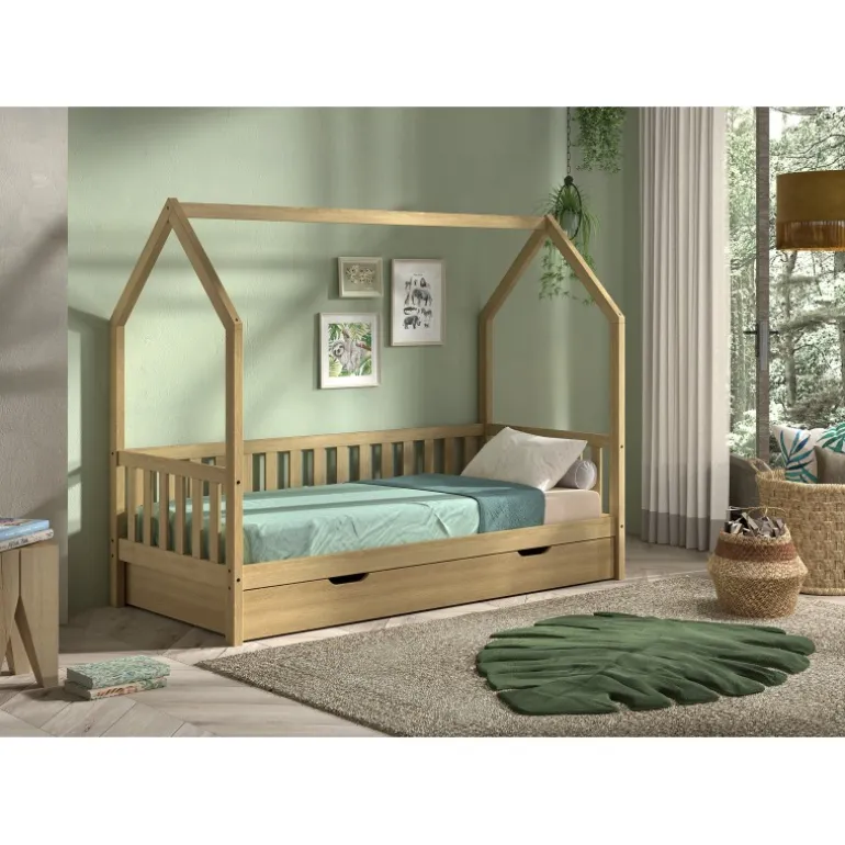 Seng til børn i eg – Nature husseng med skuffe (90×200 cm)