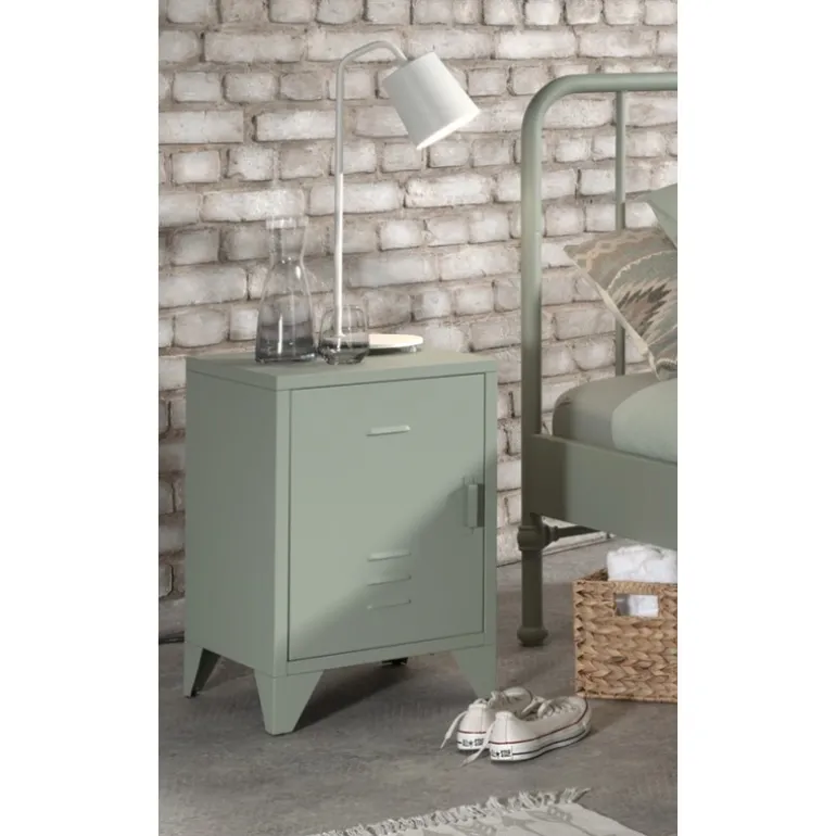 Sengebord Bronxx natbord – olivengrøn metal, industrielt