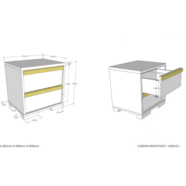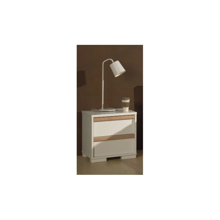 Sengebord i hvid – London natbord med 2 skuffer og soft-close
