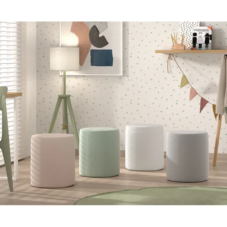 Sengebord/puf i bouclé – Moon Natbord, hvid