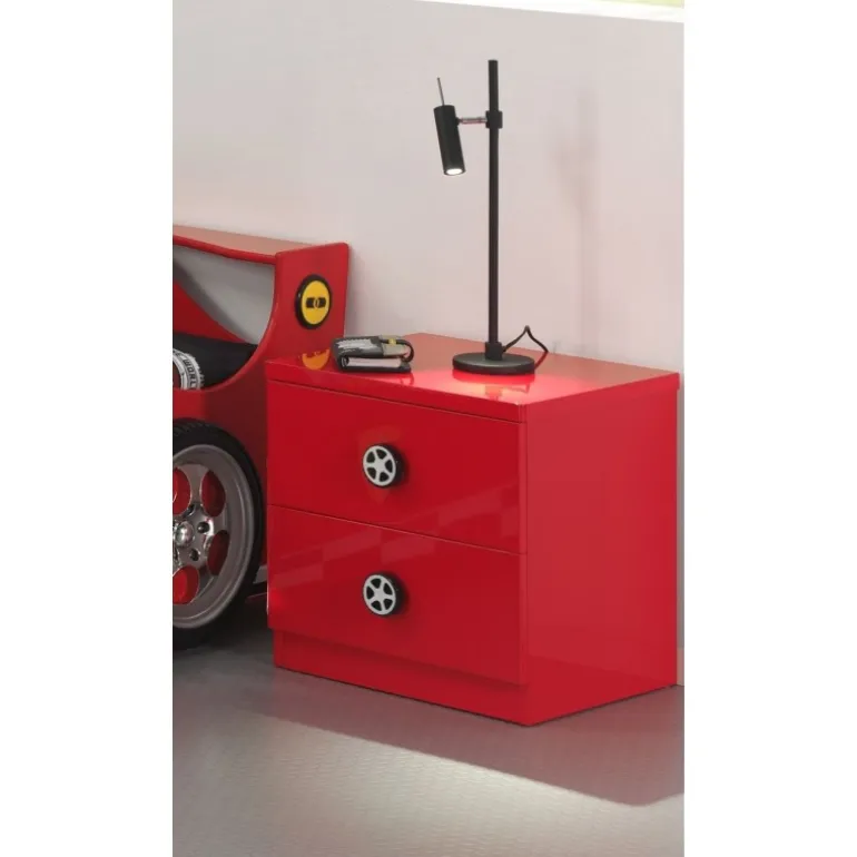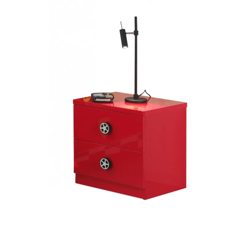 Sengebord til børn MONZA – rød lak, 2 skuffer