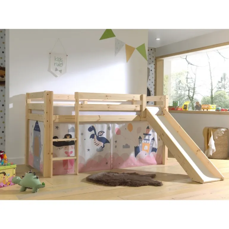 Sengeforhæng til halvhøj seng – Prinsesse Sophie, hvid/lyserød (PINO/SCOTT)