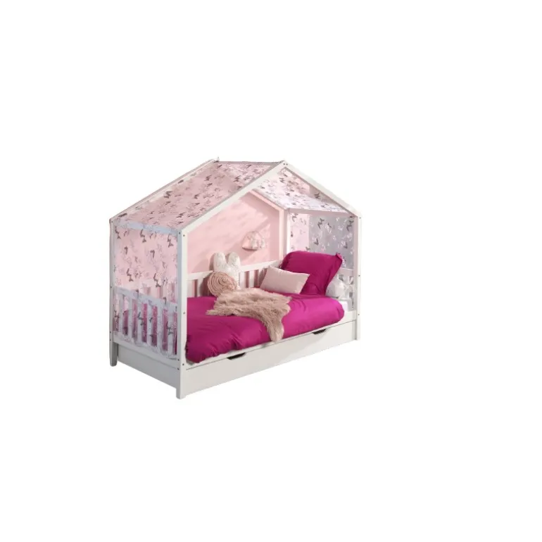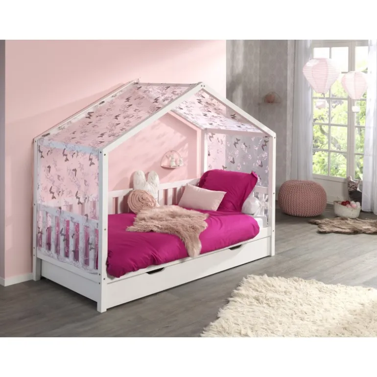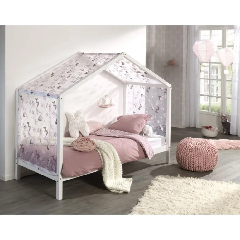 Sengehimmelsæt til hus-seng – DALLAS, sommerfugl, hvid