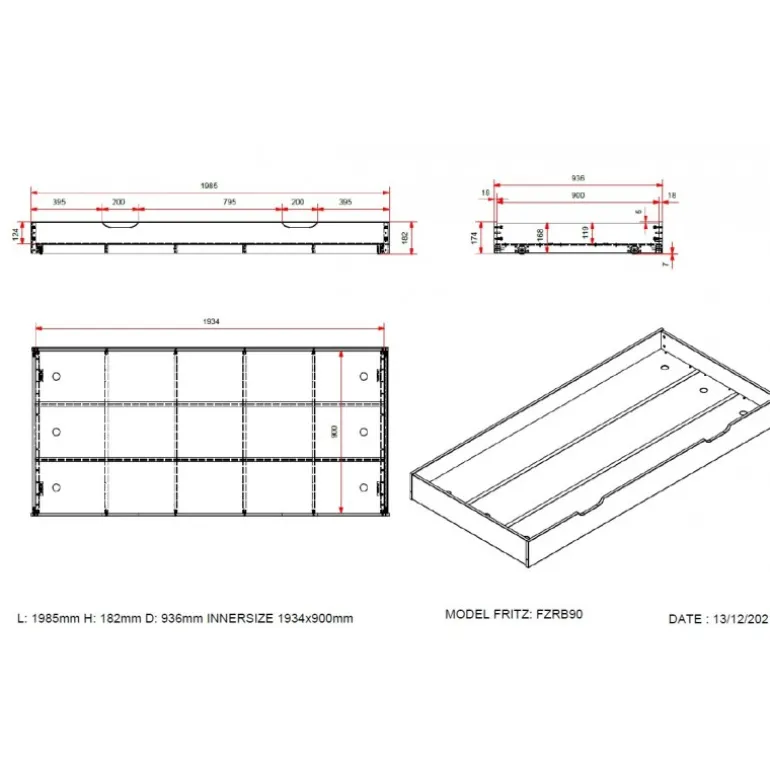 Sengeskuffe med opbevaring Fritz (90 x 190 cm) – Natur