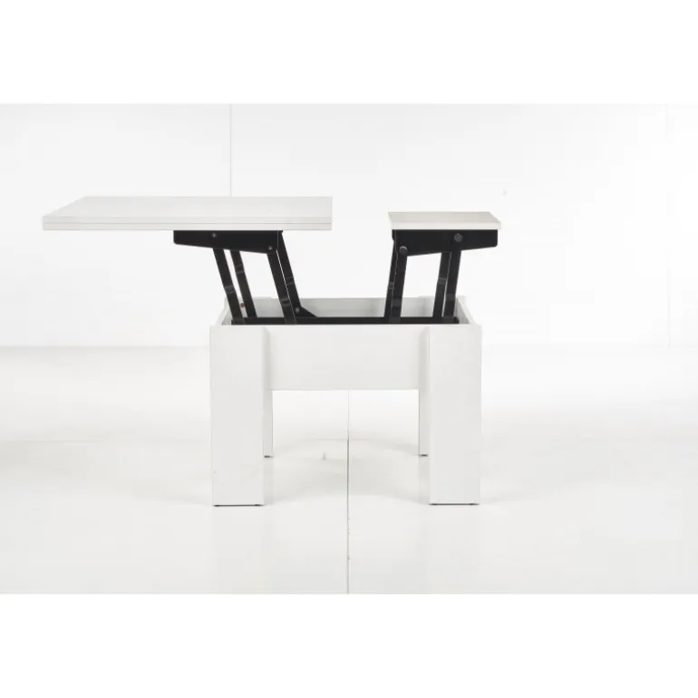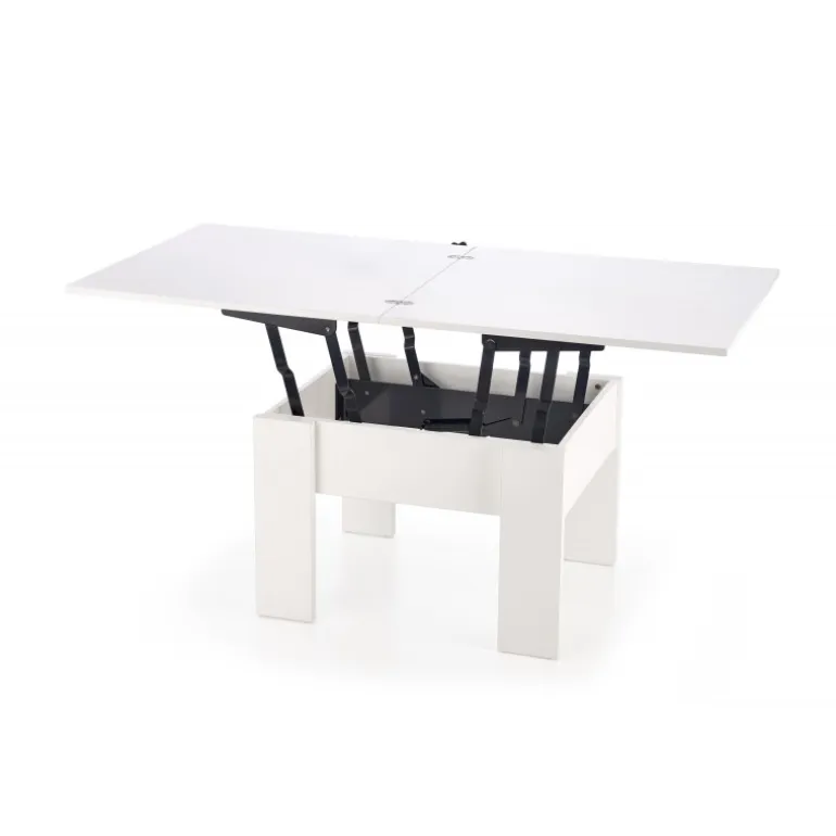 Oplev praktisk og elegant design med SERAFIN løftekaffebord i hvid. Dette løftekaffebord er fremstillet af holdbart lamineret spånplade og tilbyder alsidighed og stil til din stue. Med justerbare dimensioner fra 80 til 160 cm i længden, 80 cm i bredden og en højdejusterbarhed fra 53 til 79 cm, tilpasser dette bord sig nemt til dine behov, uanset om du underholder gæster eller har brug for ekstra plads til arbejde.
