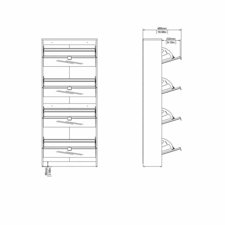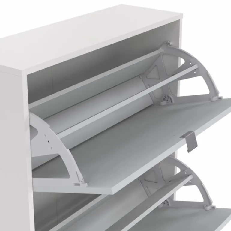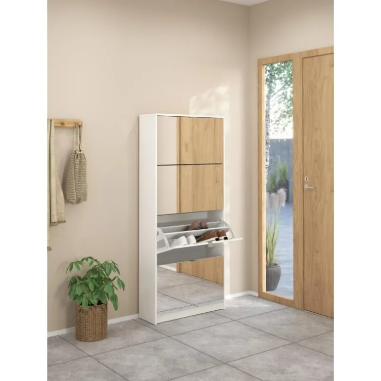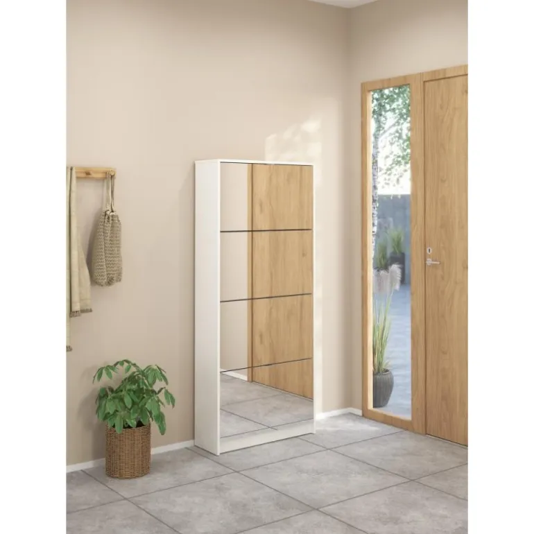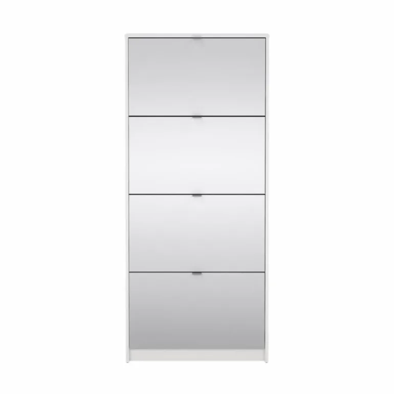 Shoes Skoskab 4 spejl klaplåger med 2 rum – Hvid / Hvid