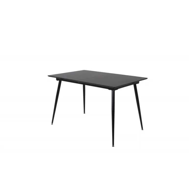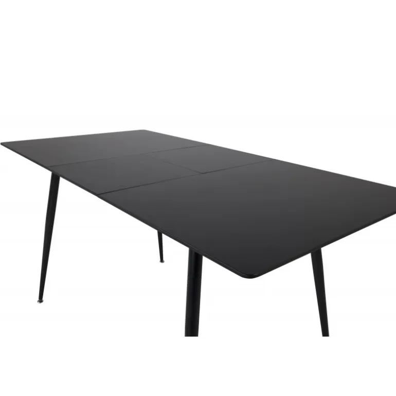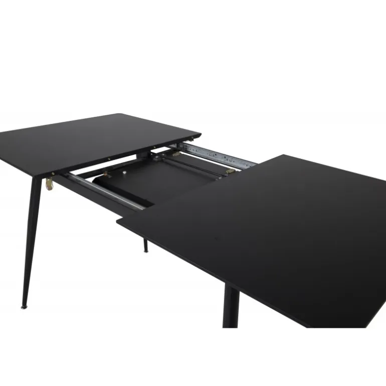 - Udtræksspisbord i sort, der kombinerer MDF og metal