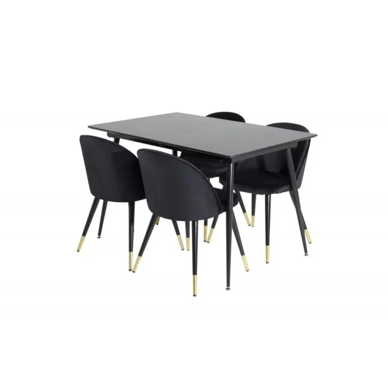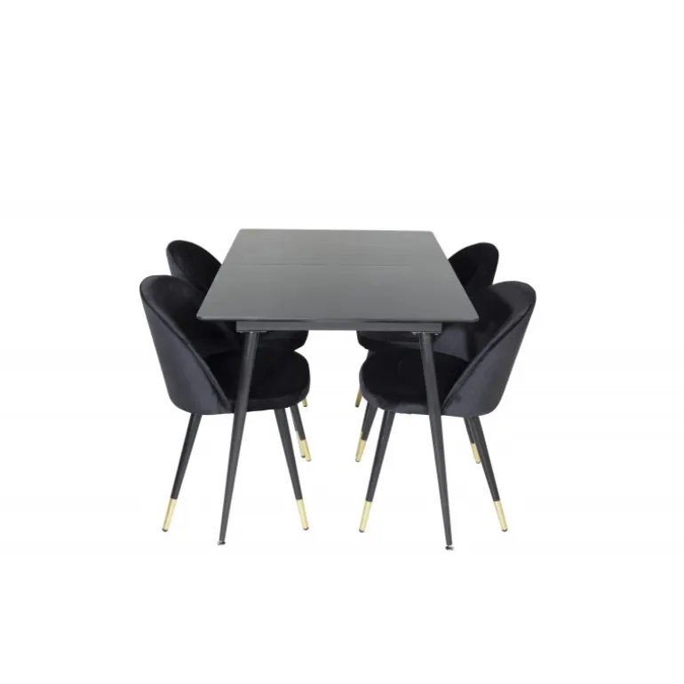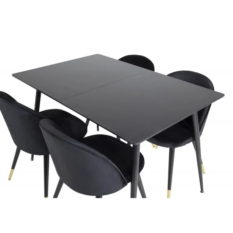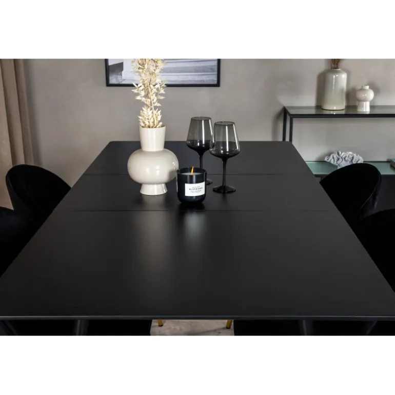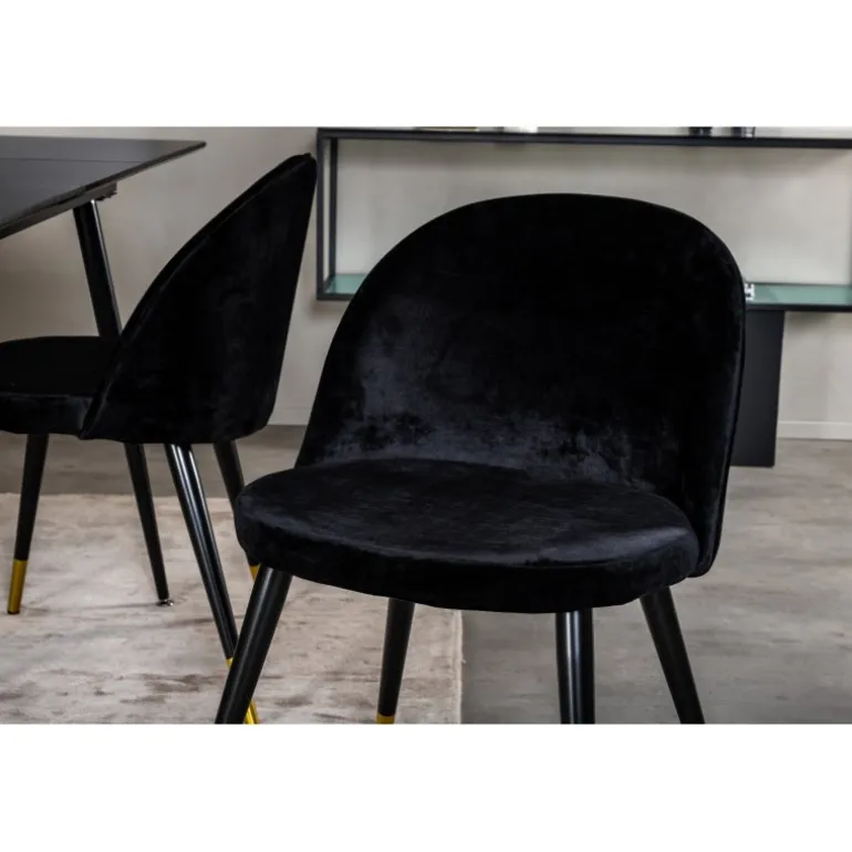 Vores stilfulde sorte spisebordsstole i velour fra Velvet-serien kombineret med spisebordet Sinar passer ind i de fleste husholdninger. Et bord med masser af plads til middage og socialt samvær. Indret dit hjem med et strejf af luksus – det skal føles rart at komme hjem!
