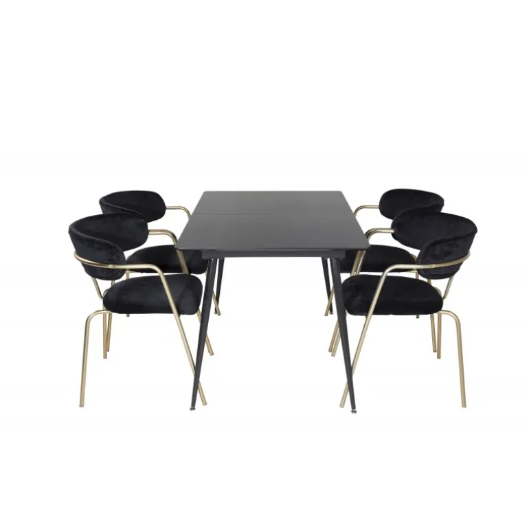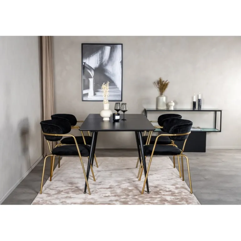 Moderne og luksuriøs. Kombinationen af vores stilrene spisebord i serien Silar og vores elegante spisestuestole Arrow skaber en Spisebordssæt, man længes efter at komme hjem til. De høje siddekomfort i stolene inviterer til lange og vidunderlige stunder med socialt samvær!