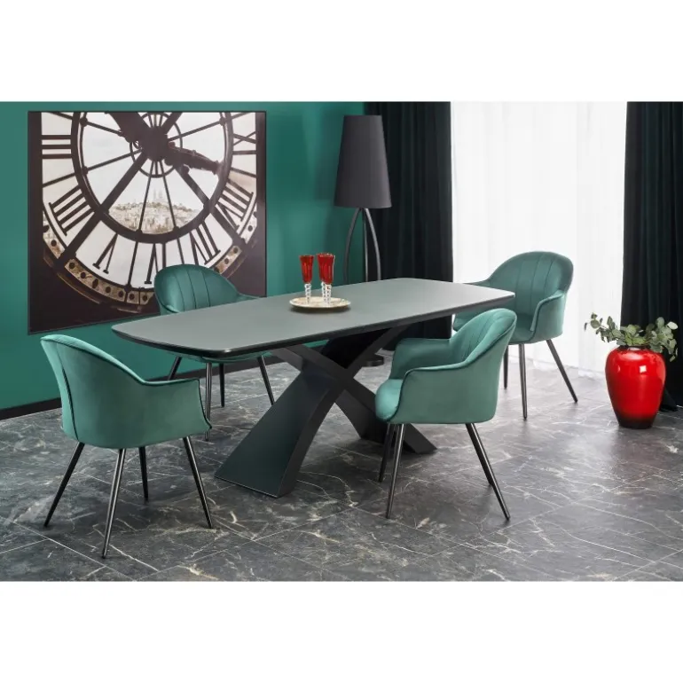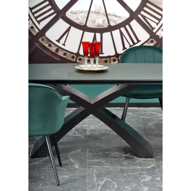 SILVESTRO bord mørkegrå med Sorte ben er en elegant og moderne tilføjelse til dit hjem. Dette Spisebord med udtræk er perfekt til både små og store sammenkomster. Med en bordplade i glas og lakeret MDF får du en robust og stilfuld overflade i mørkegrå, som passer perfekt til de Sorte ben. Bordet kan nemt udvides fra 180 cm til 220 cm, hvilket giver dig fleksibilitet til enhver begivenhed. Uanset om det er til middage, arbejdsstationer eller hobbyprojekter, er SILVESTRO det ideelle valg.