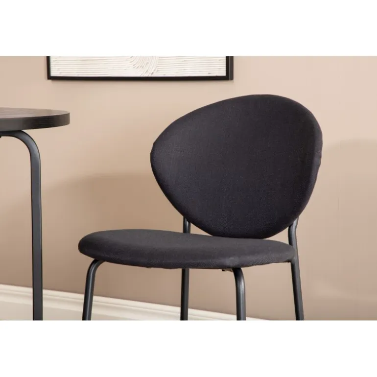 - Vault spisestole: Komfortable og designet med sort polyesterstof og metalben.