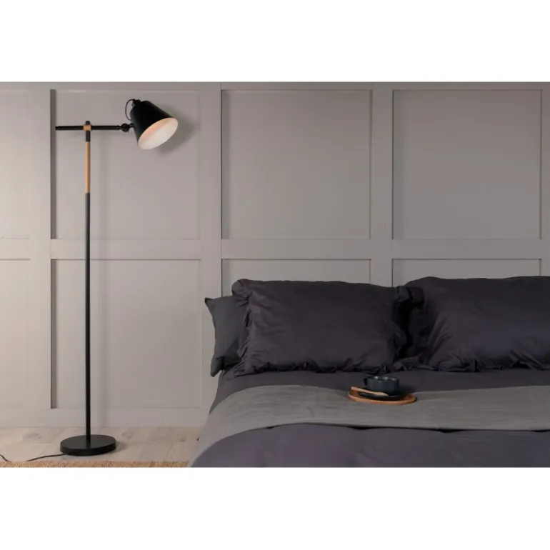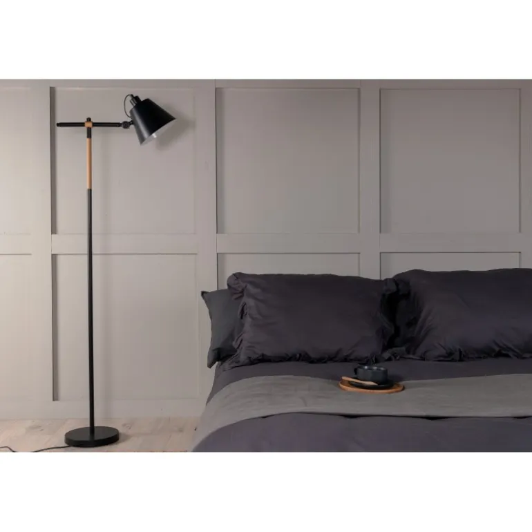 Skott Belysning er en elegant sort stålampe med trædetaljer, der tilføjer et stilfuldt touch til dit interiør. Lampeskærmen kan vippes op eller ned afhængigt af dine behov, hvilket gør den ideel som læselampe eller som en smuk indretningsdetalje. Den er lavet af holdbart stål og PVC, hvilket sikrer langvarig brug. Perfekt til ethvert hjem, hvor stil og funktionalitet går hånd i hånd.