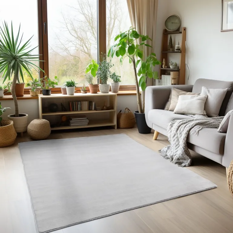 Sky Kortluvet tæppe Ensfarvet – Sølv